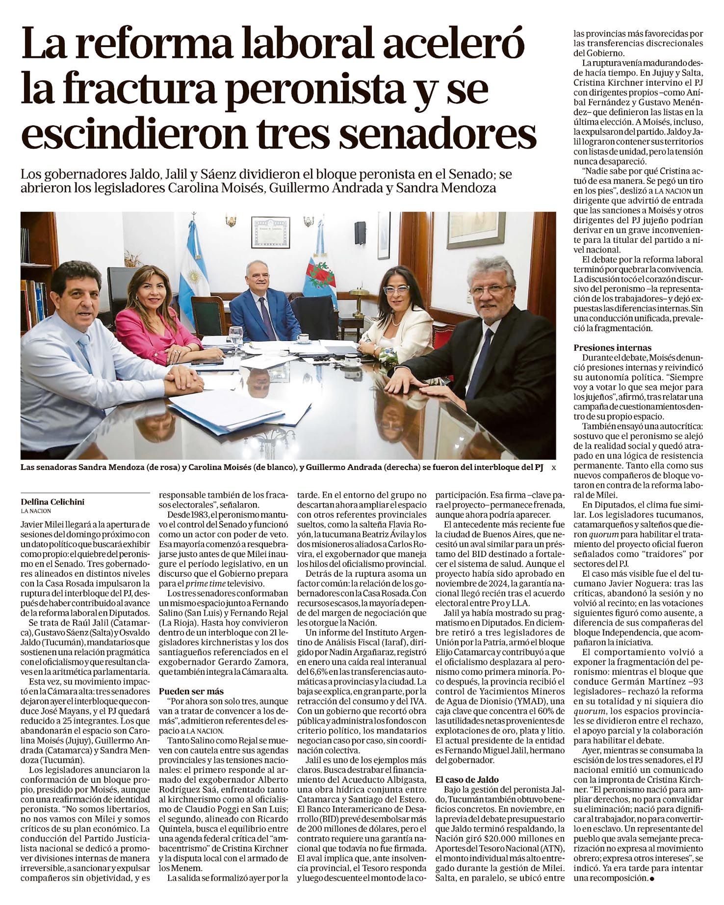 LA NACIÓN – La reforma laboral aceleró la fractura peronista y se escindieron tres senadores