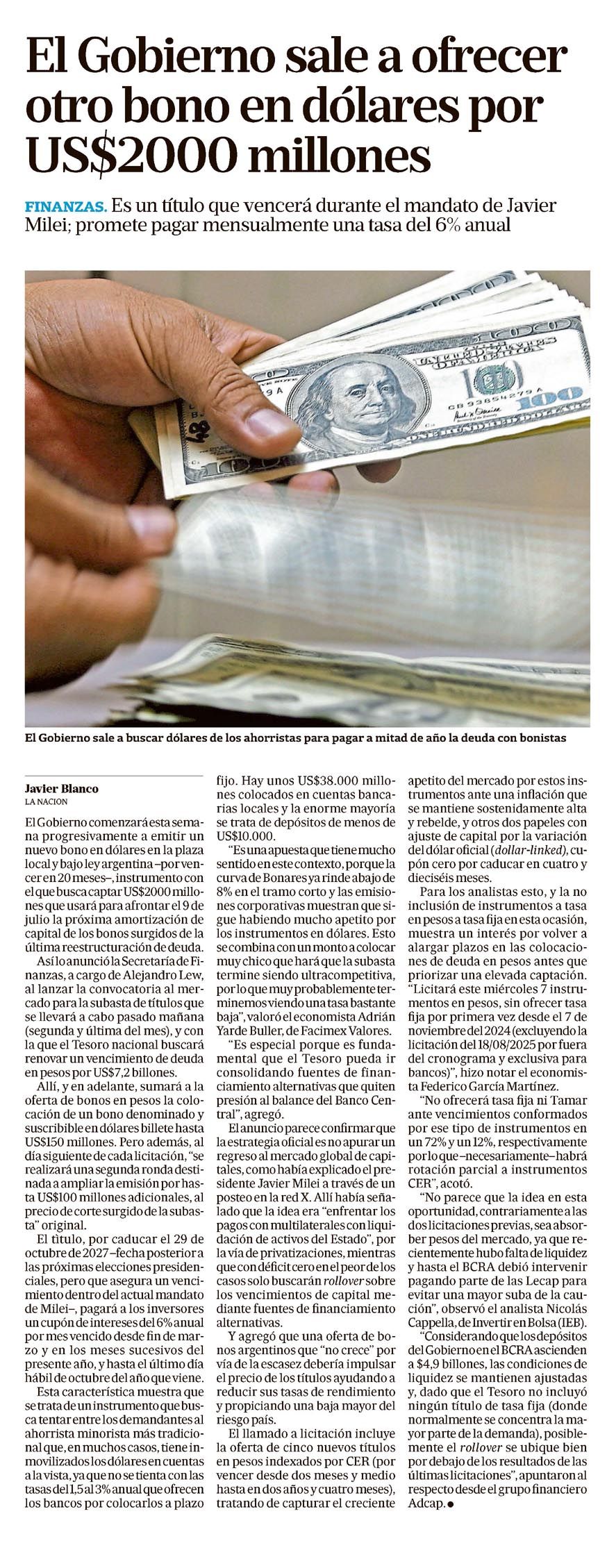 LA NACIÓN – El Gobierno sale a ofrecer otro bono en dólares por US$2000 millones