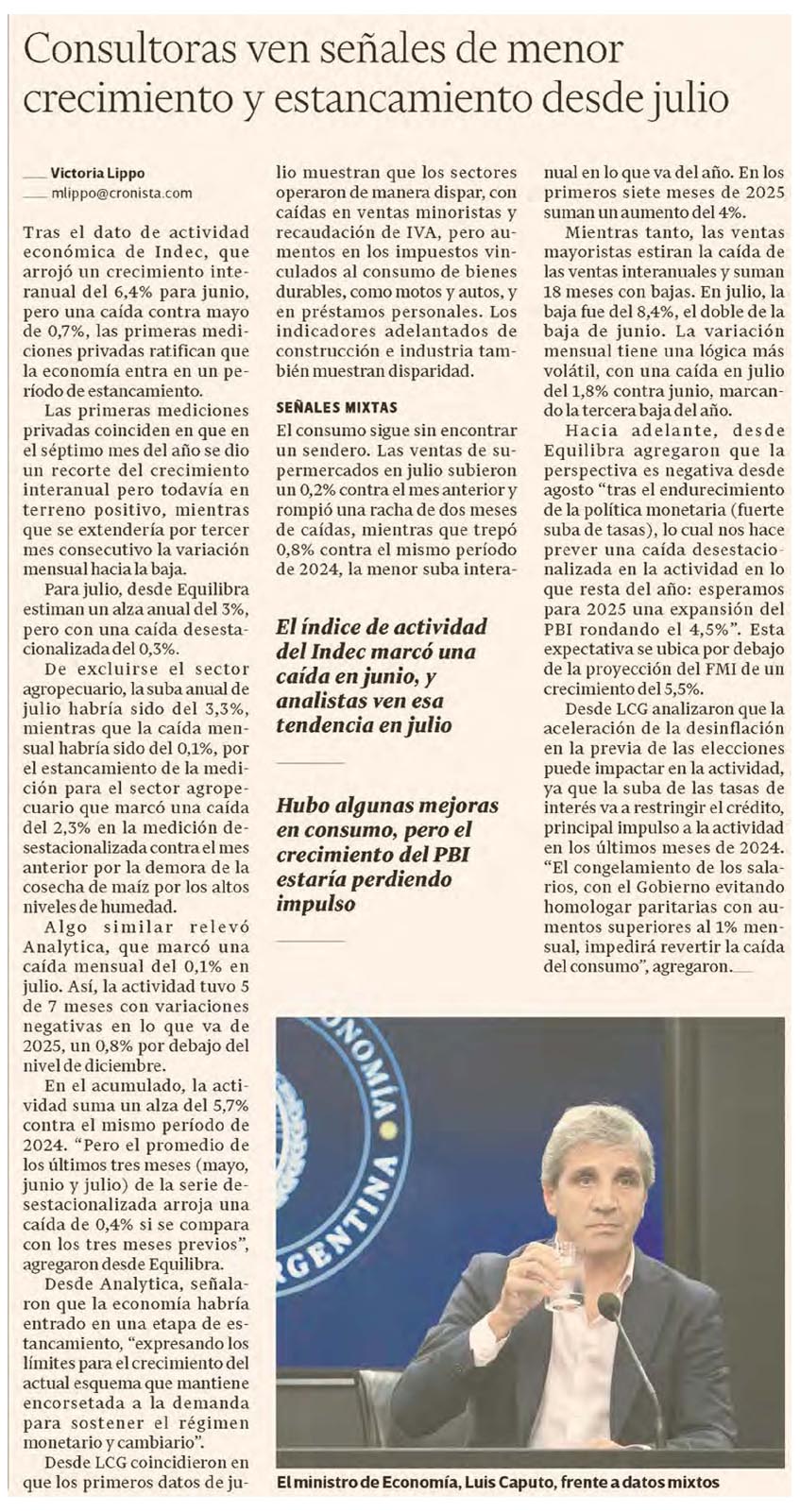 EL CRONISTA – Consultoras ven señales de menor crecimiento y estancamiento desde julio