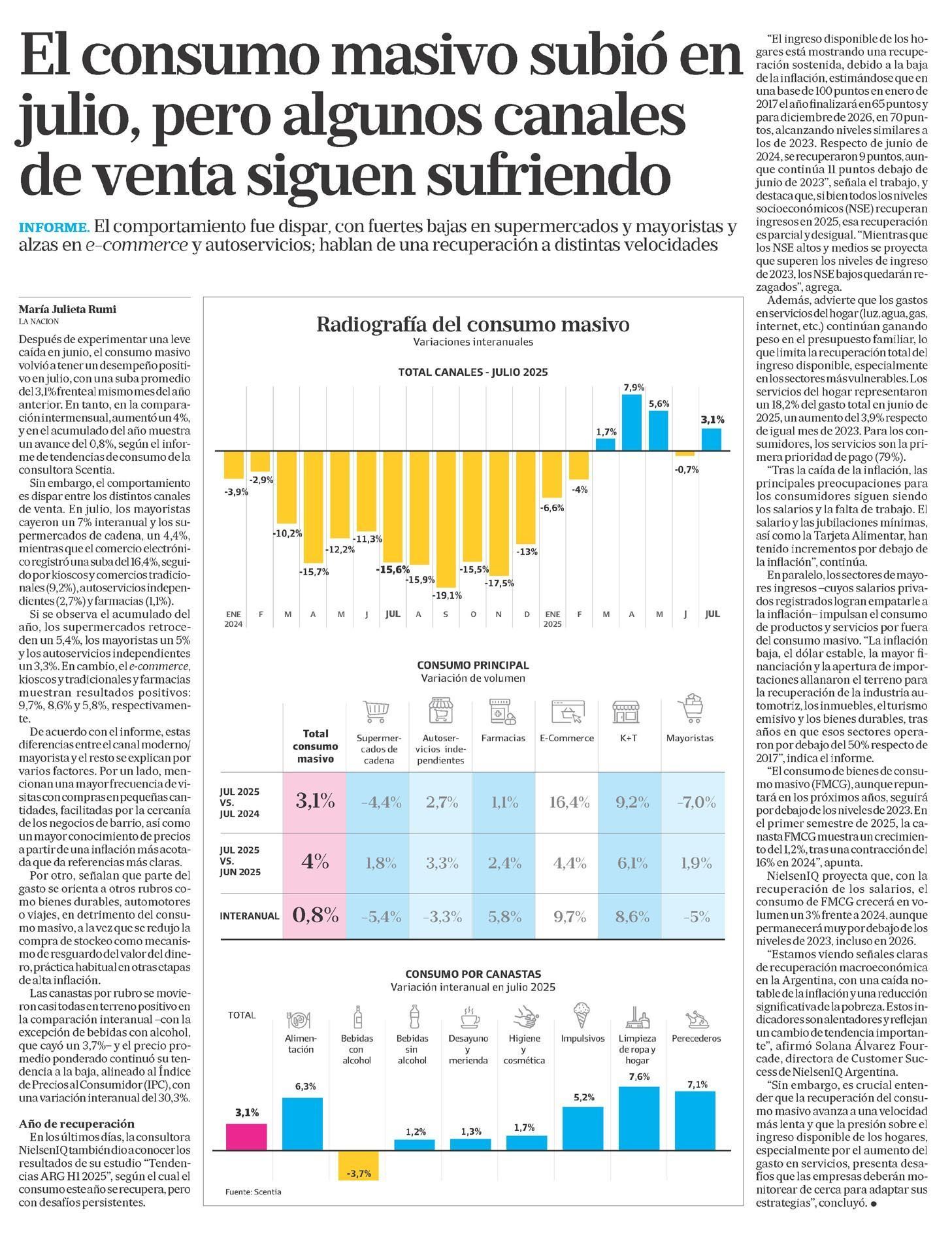 LA NACIÓN – El consumo masivo subió en julio, pero algunos canales de venta siguen sufriendo