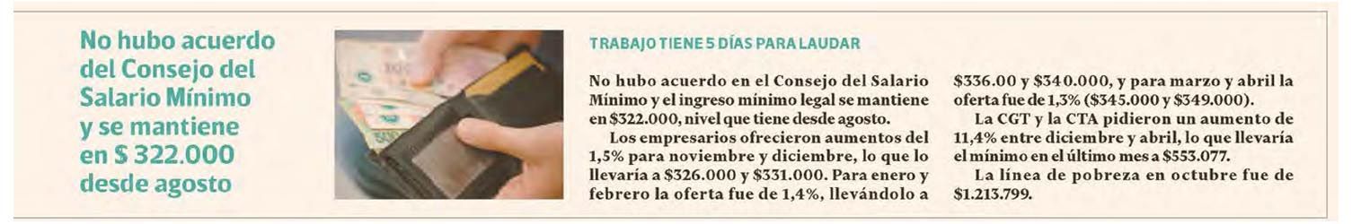 No hubo acuerdo del Consejo del Salario Mínimo y se mantiene en $ 322.000 desde agosto