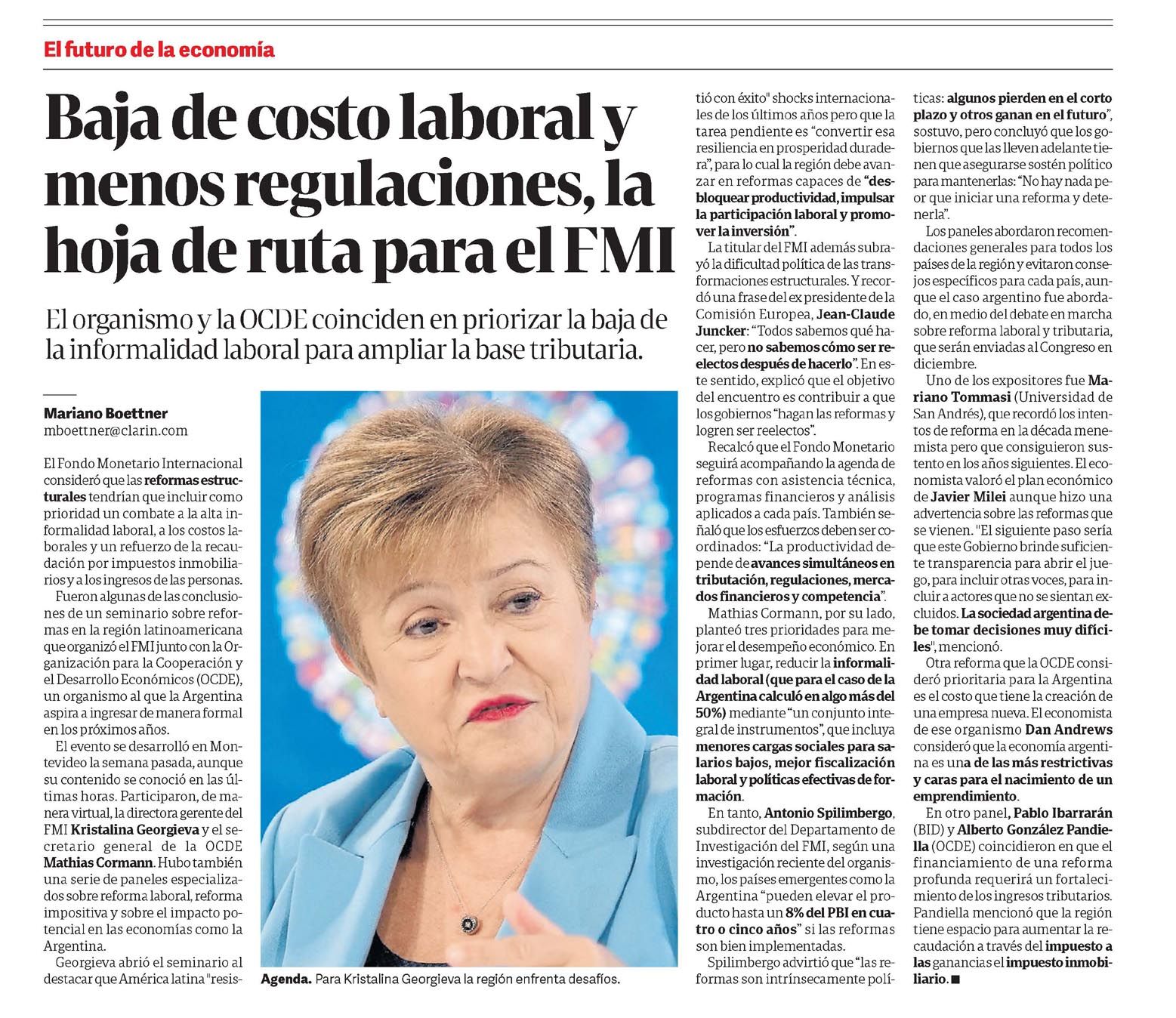 CLARÍN – Baja de costo laboral y menos regulaciones, la hoja de ruta para el FMI
