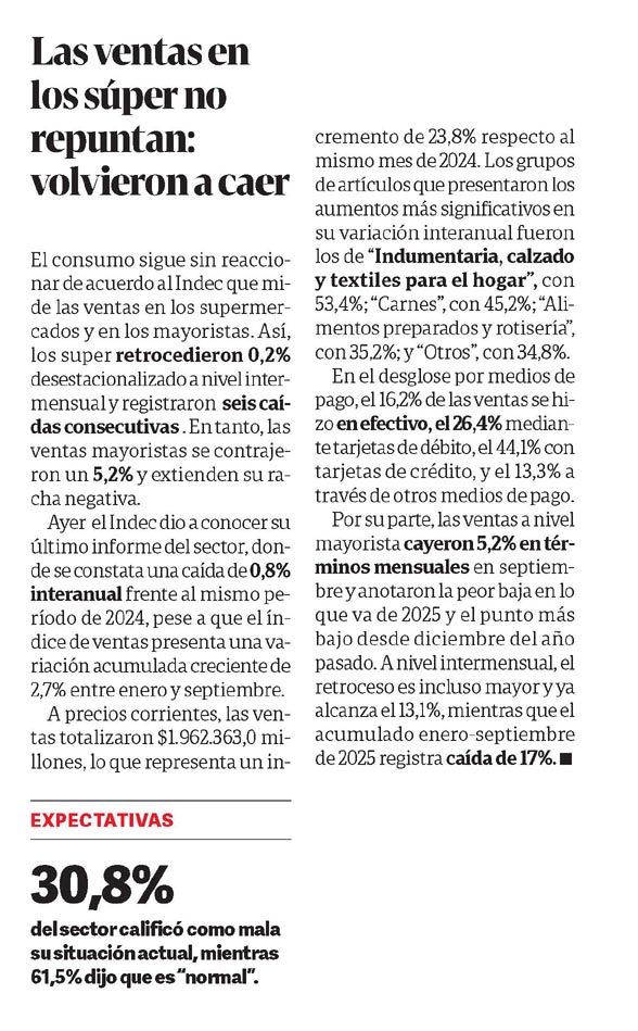 CLARÍN – Las ventas en los súper no repuntan: volvieron a caer