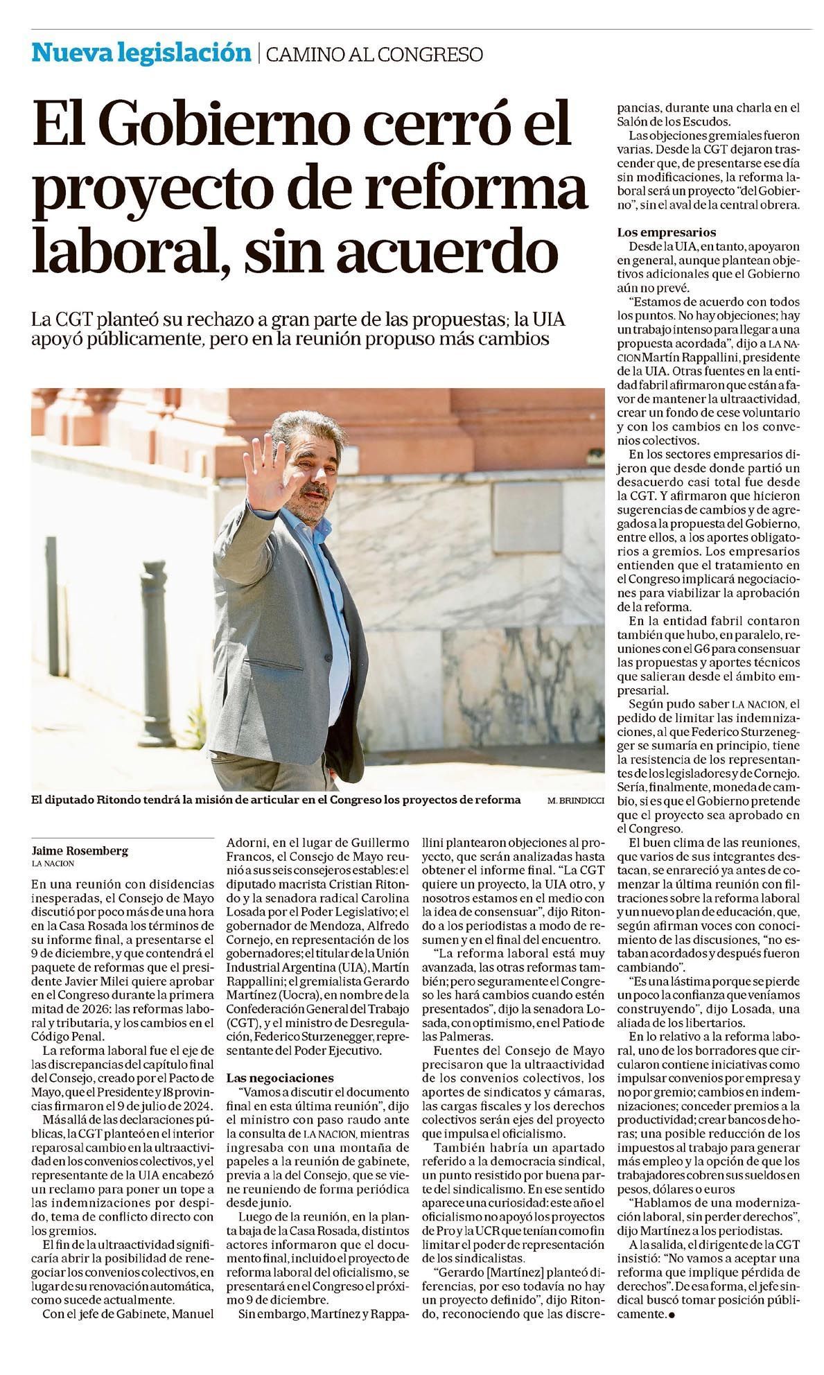 LA NACIÓN – El Gobierno cerró el proyecto de reforma laboral, sin acuerdo