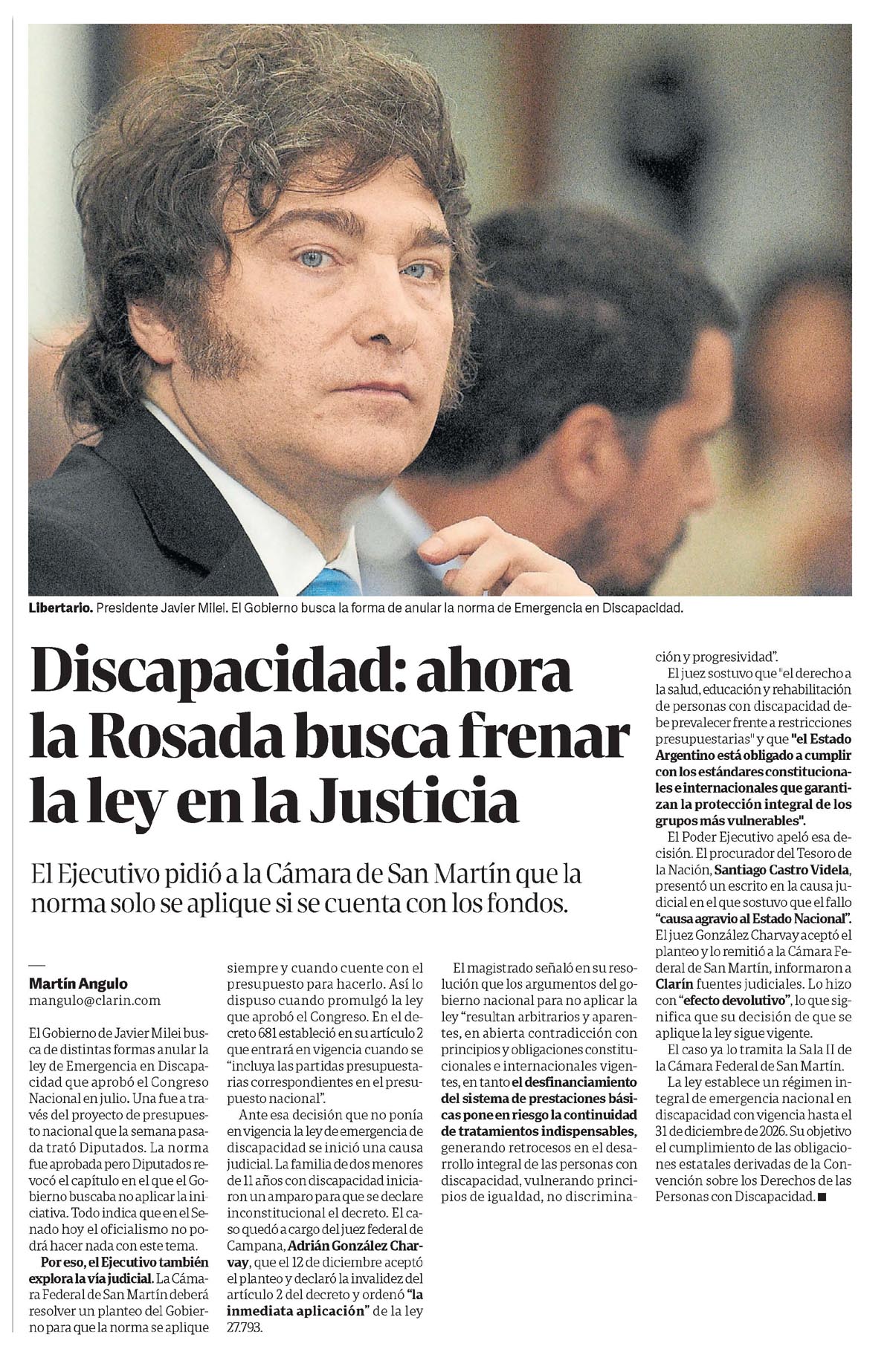 CLARÍN – Discapacidad: ahora la Rosada busca frenar la ley en la Justicia