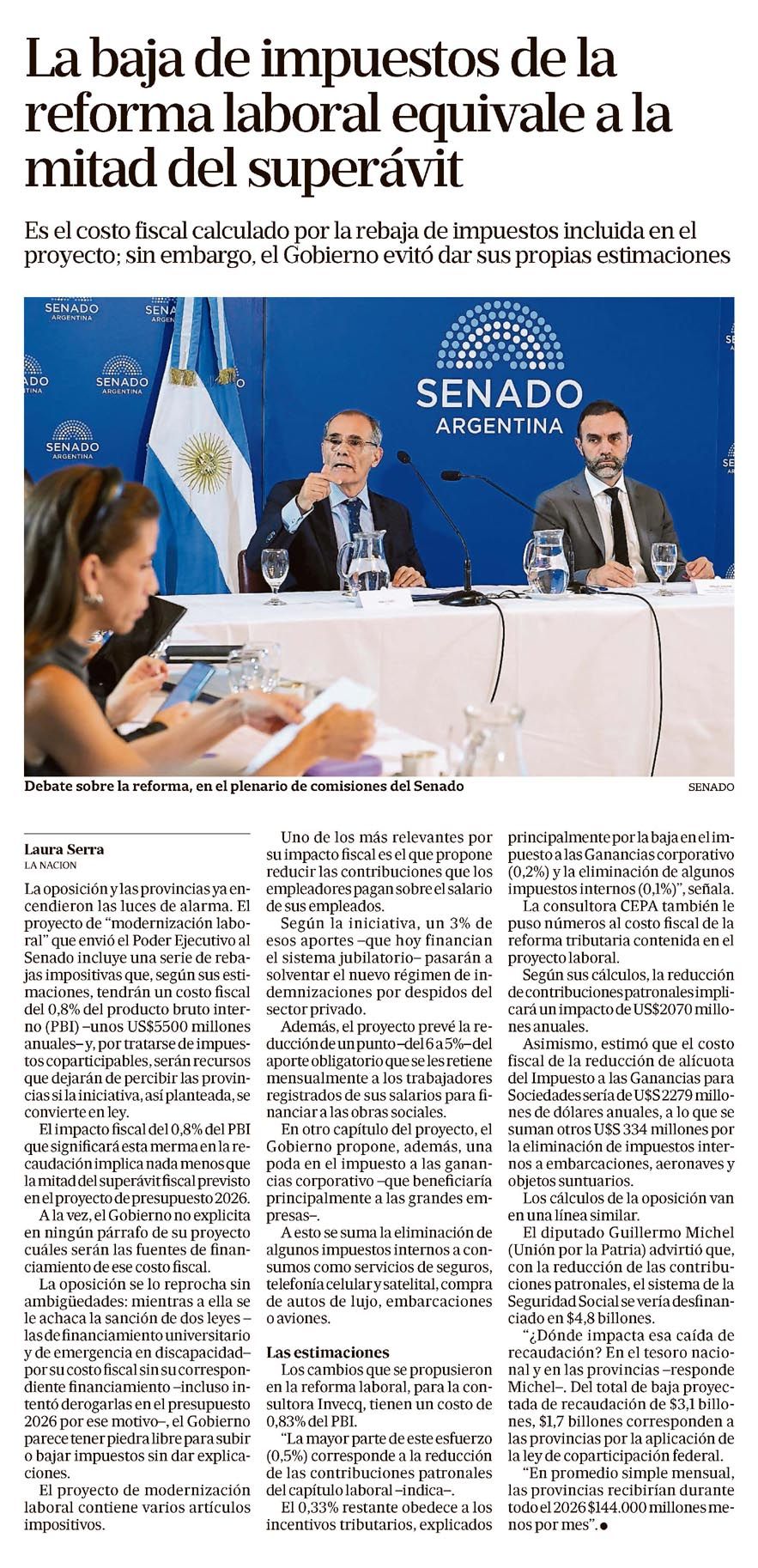 LA NACIÓN – La baja de impuestos de la reforma laboral equivale a la mitad del superávit