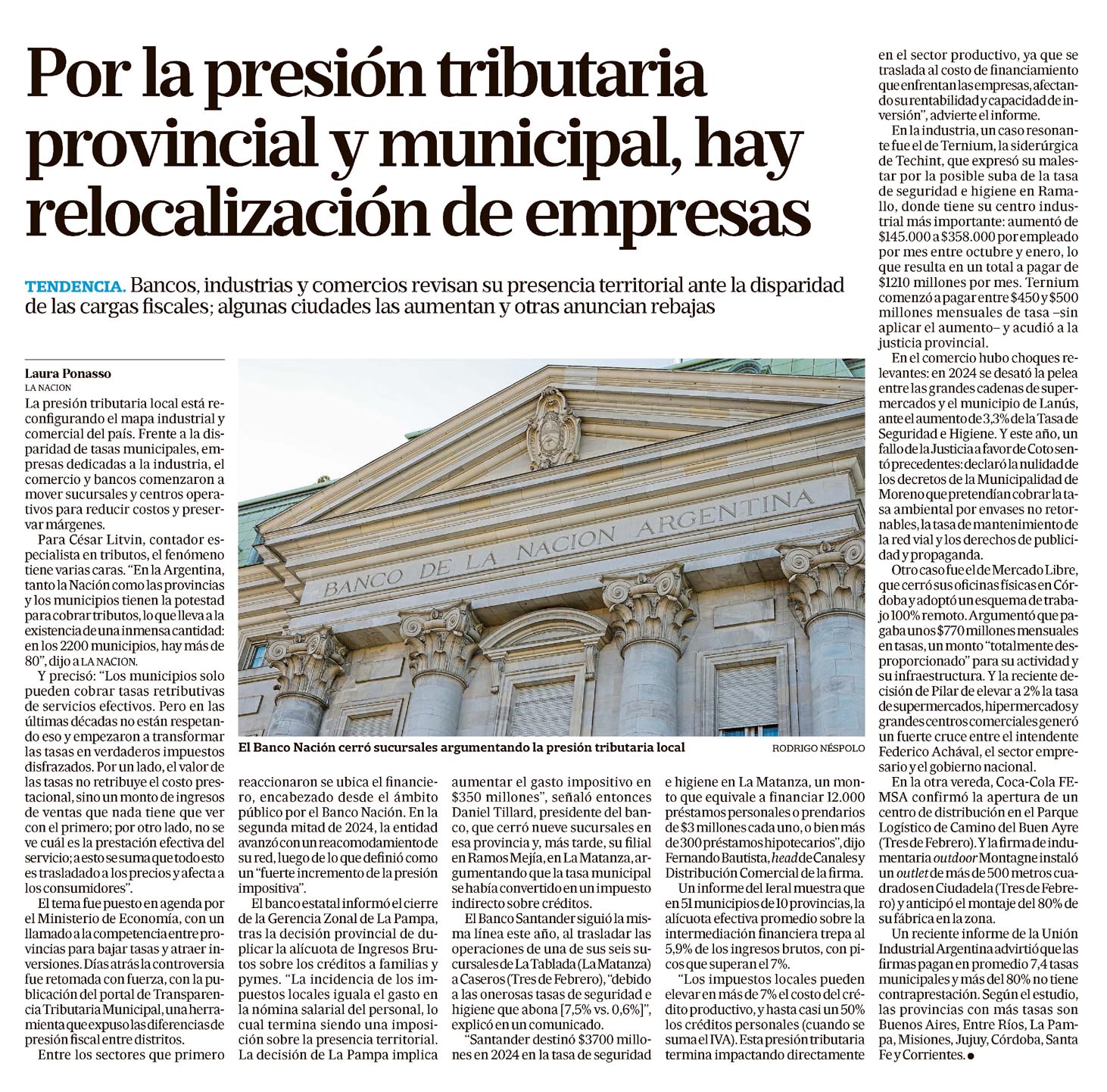LA NACIÓN – Por la presión tributaria provincial y municipal, hay relocalización de empresas