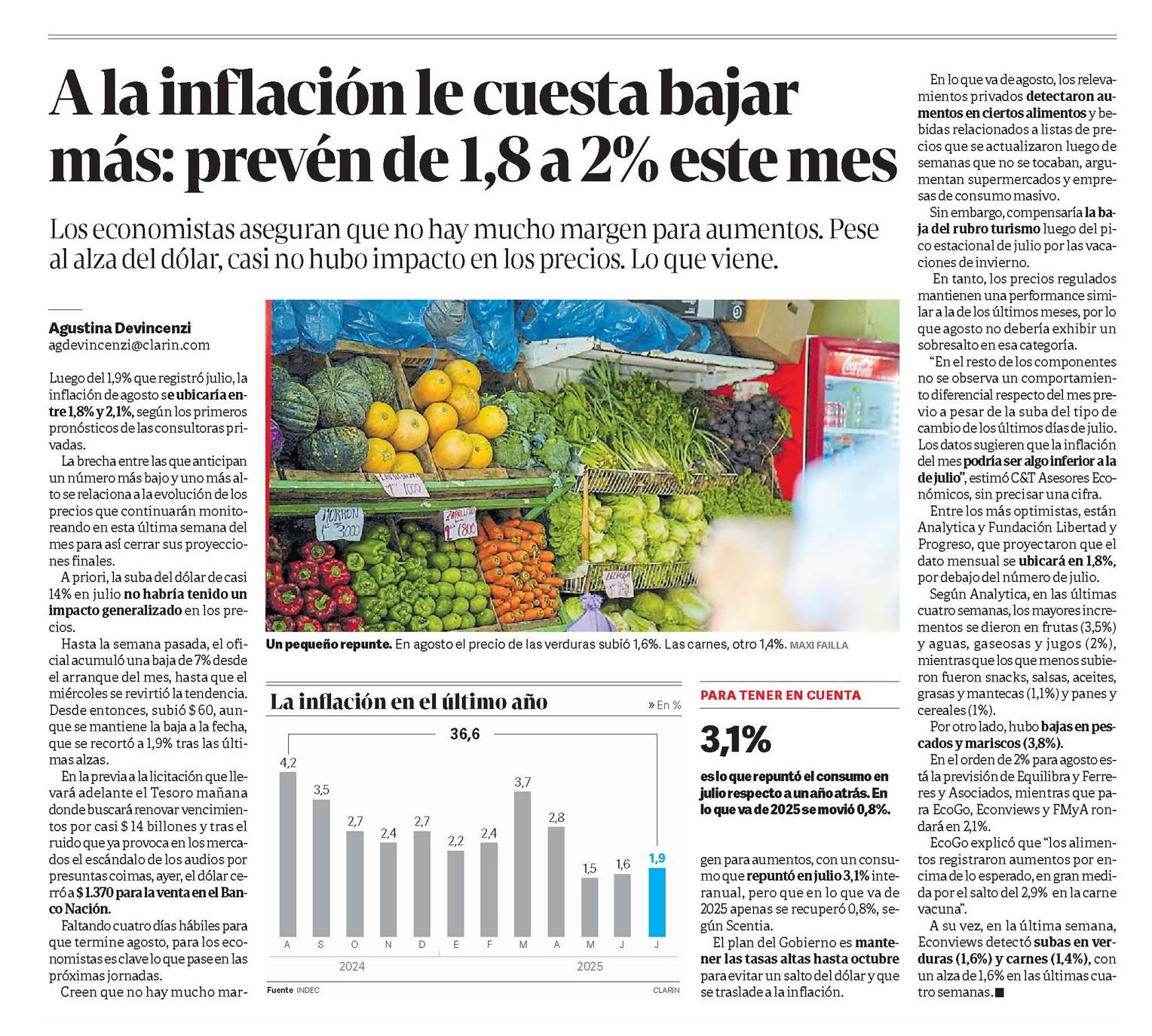 CLARÍN – A la inflación le cuesta bajar más: prevén de 1,8 a 2% este mes