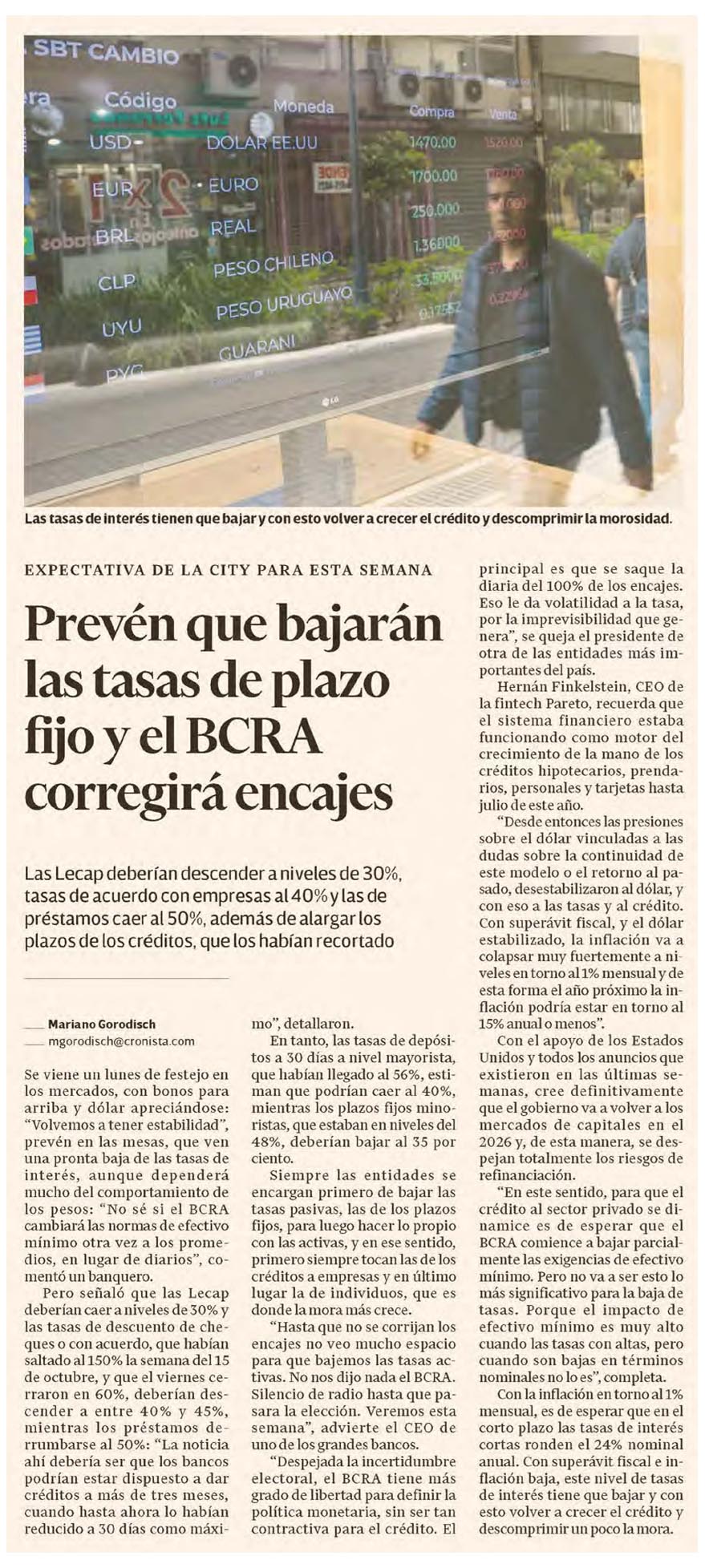 EL CRONISTA – Prevén que bajarán las tasas de plazo fijo y el BCRA corregirá encajes