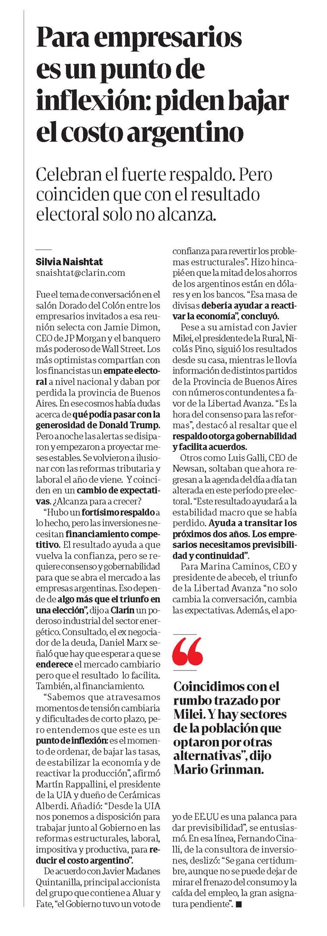 CLARÍN – Para empresarios es un punto de inflexión: piden bajar el costo argentino