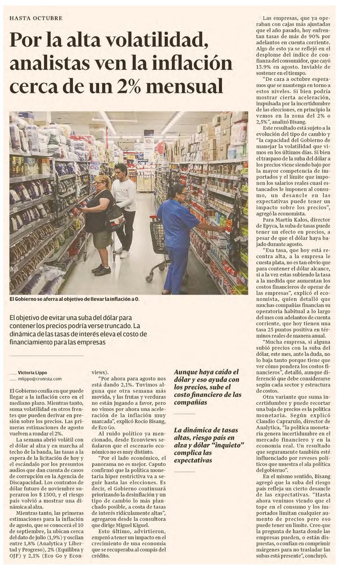 EL CRONISTA – Por la alta volatilidad, analistas ven la inflación cerca de un 2% mensual