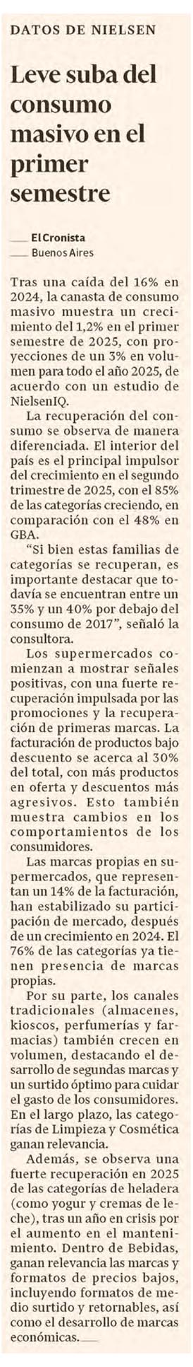 EL CRONISTA – Leve suba del consumo masivo en el primer semestre