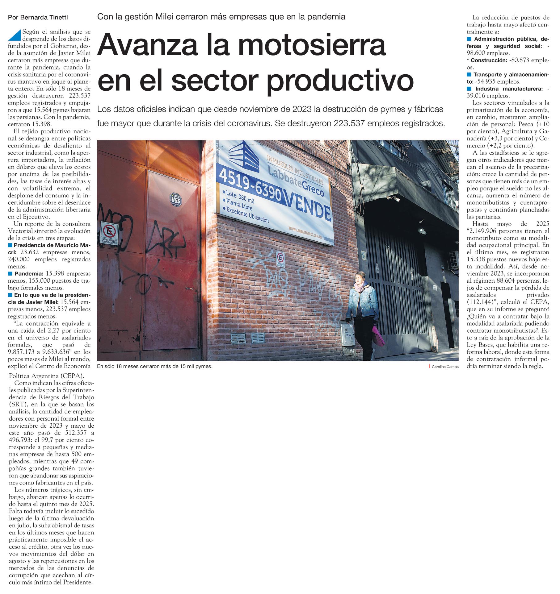 Los datos oficiales indican que desde noviembre de 2023 la destrucción de pymes y fábricas fue mayor que durante la crisis del coronavirus. Se destruyeron 223.537 empleos registrados.
