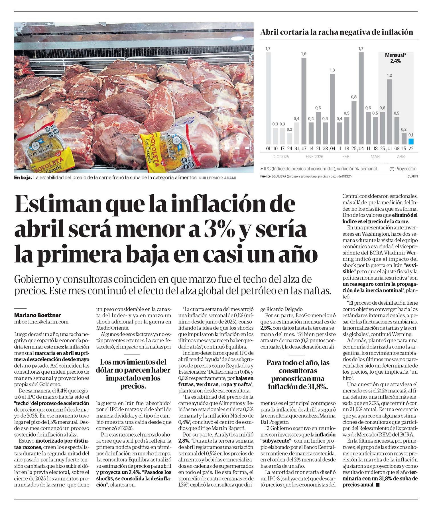 CLARÍN – Estiman que la inflación de abril será menor a 3% y sería la primera baja en casi un año
