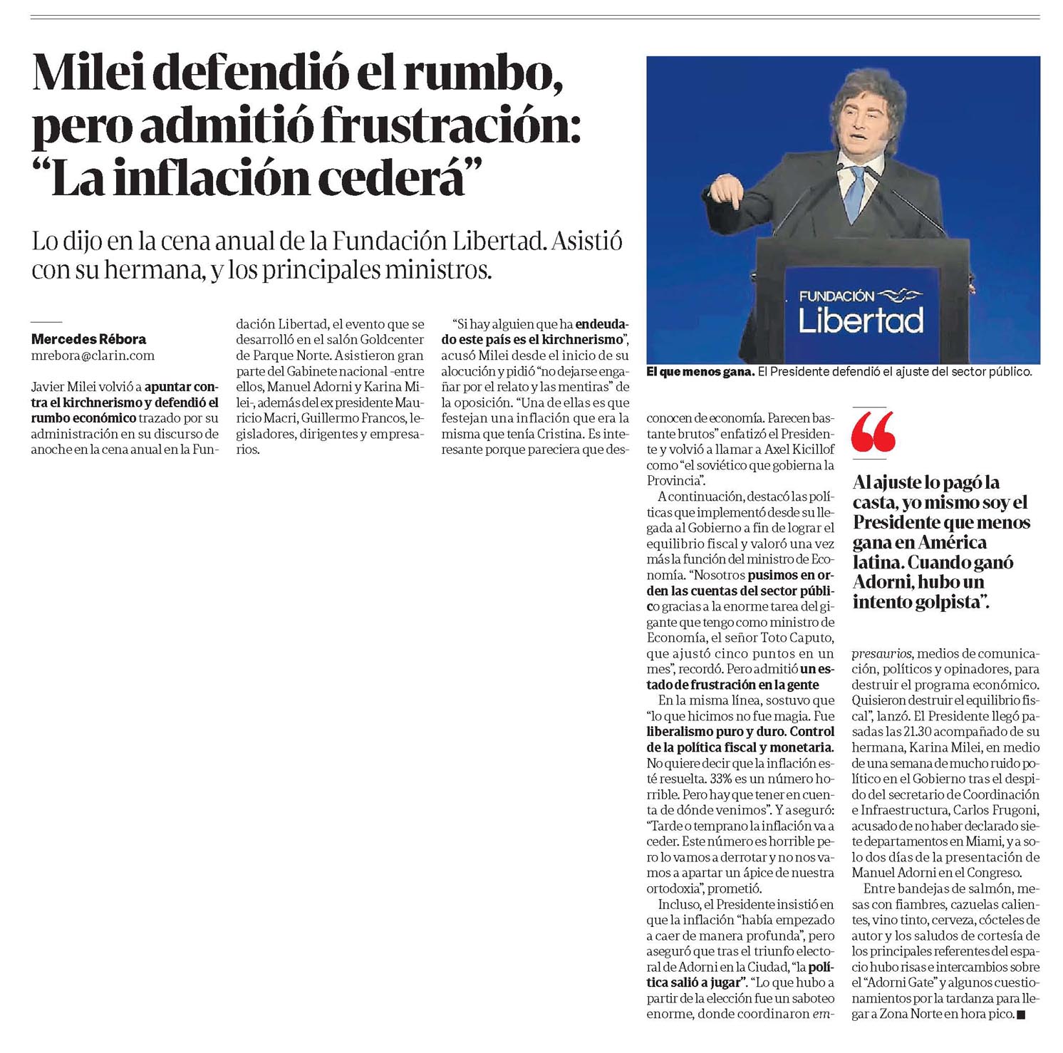 CLARÍN – Milei defendió el rumbo, pero admitió frustración: "La inflación cederá"