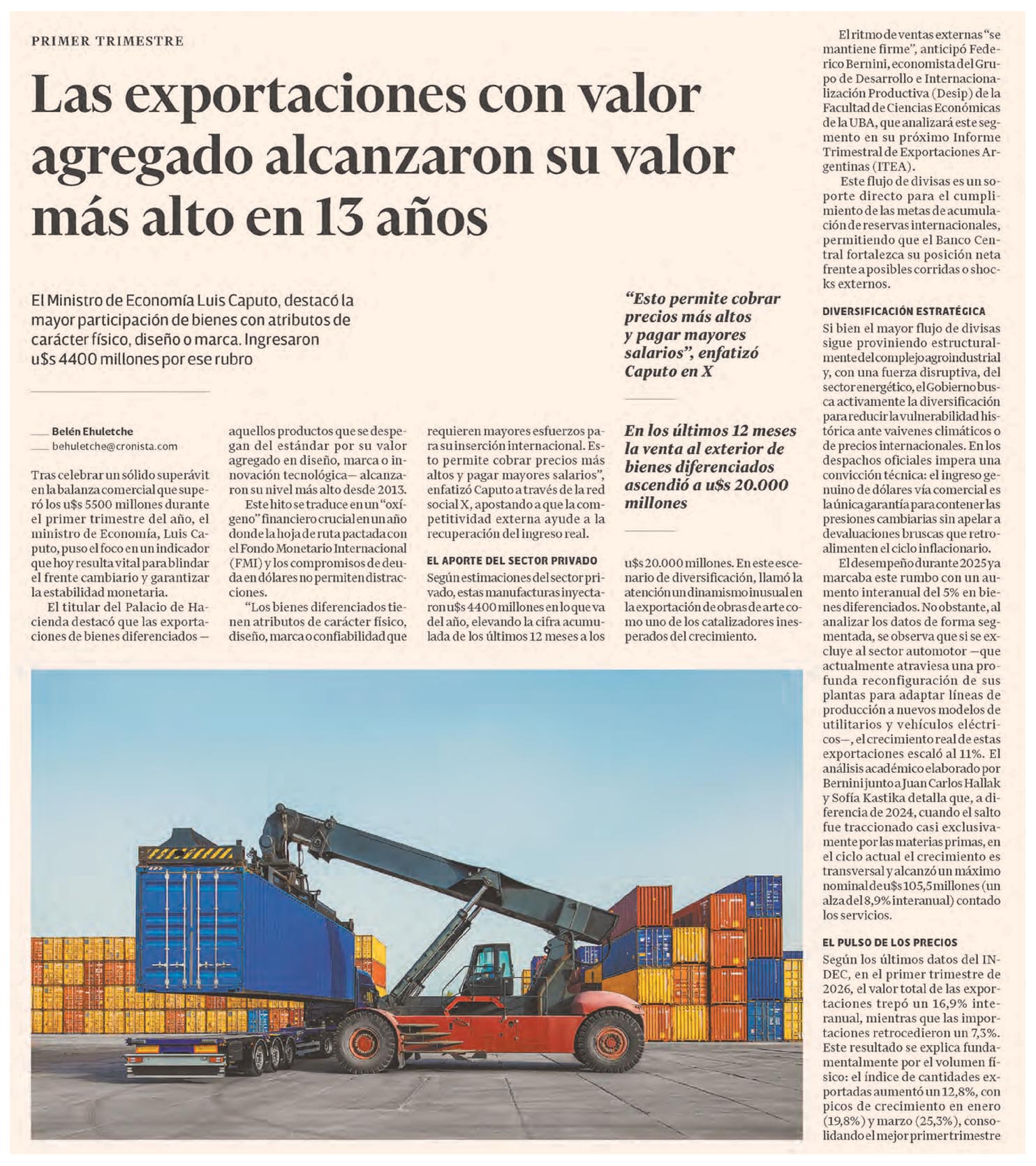 EL CRONISTA – Las exportaciones con valor agregado alcanzaron su valor más alto en 13 años