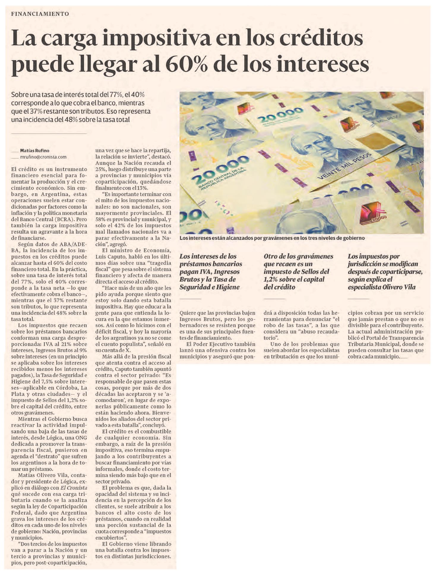 EL CRONISTA – La carga impositiva en los créditos puede llegar al 60% de los intereses
