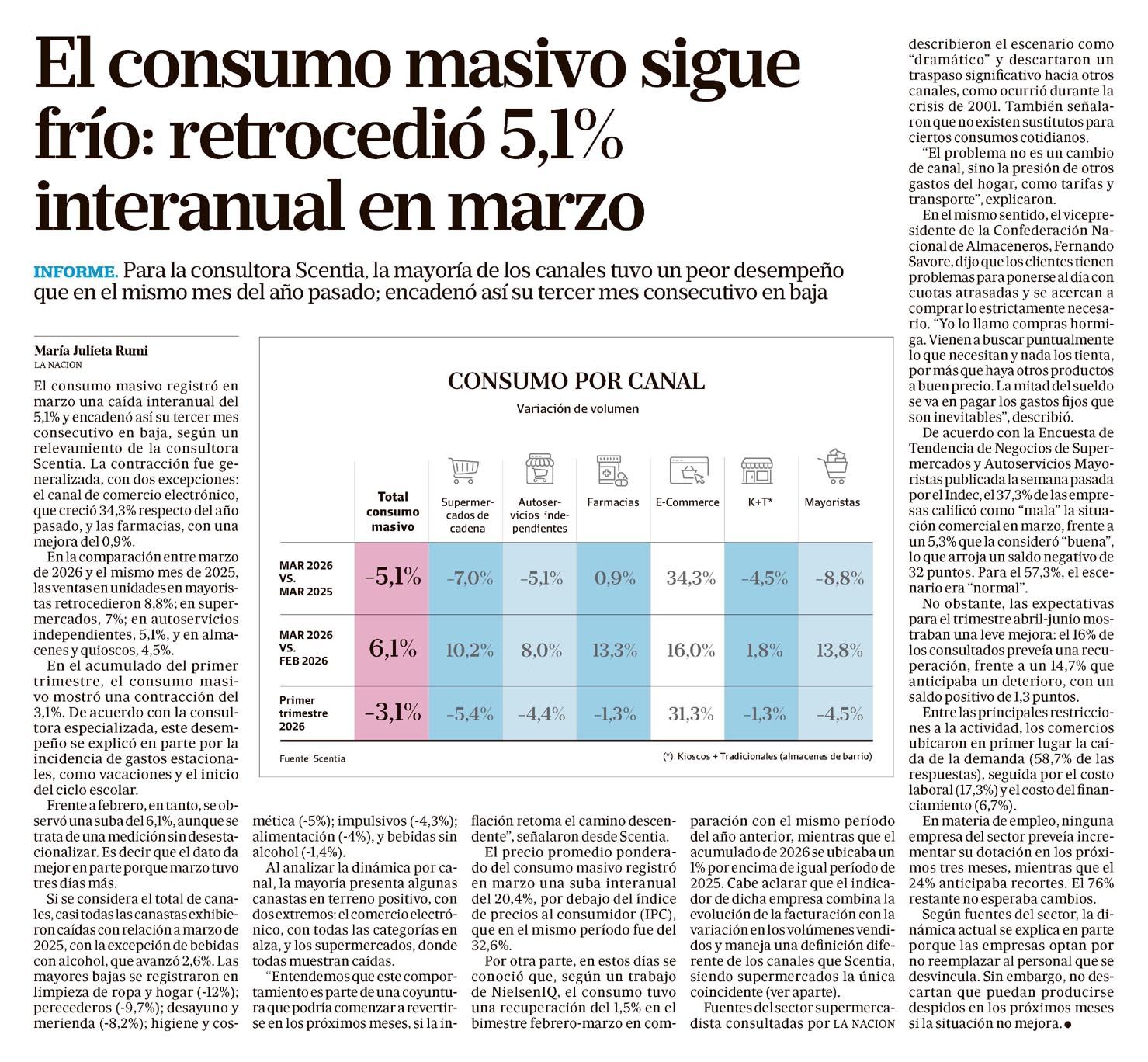 LA NACIÓN – El consumo masivo sigue frío: retrocedió 5,1% interanual en marzo