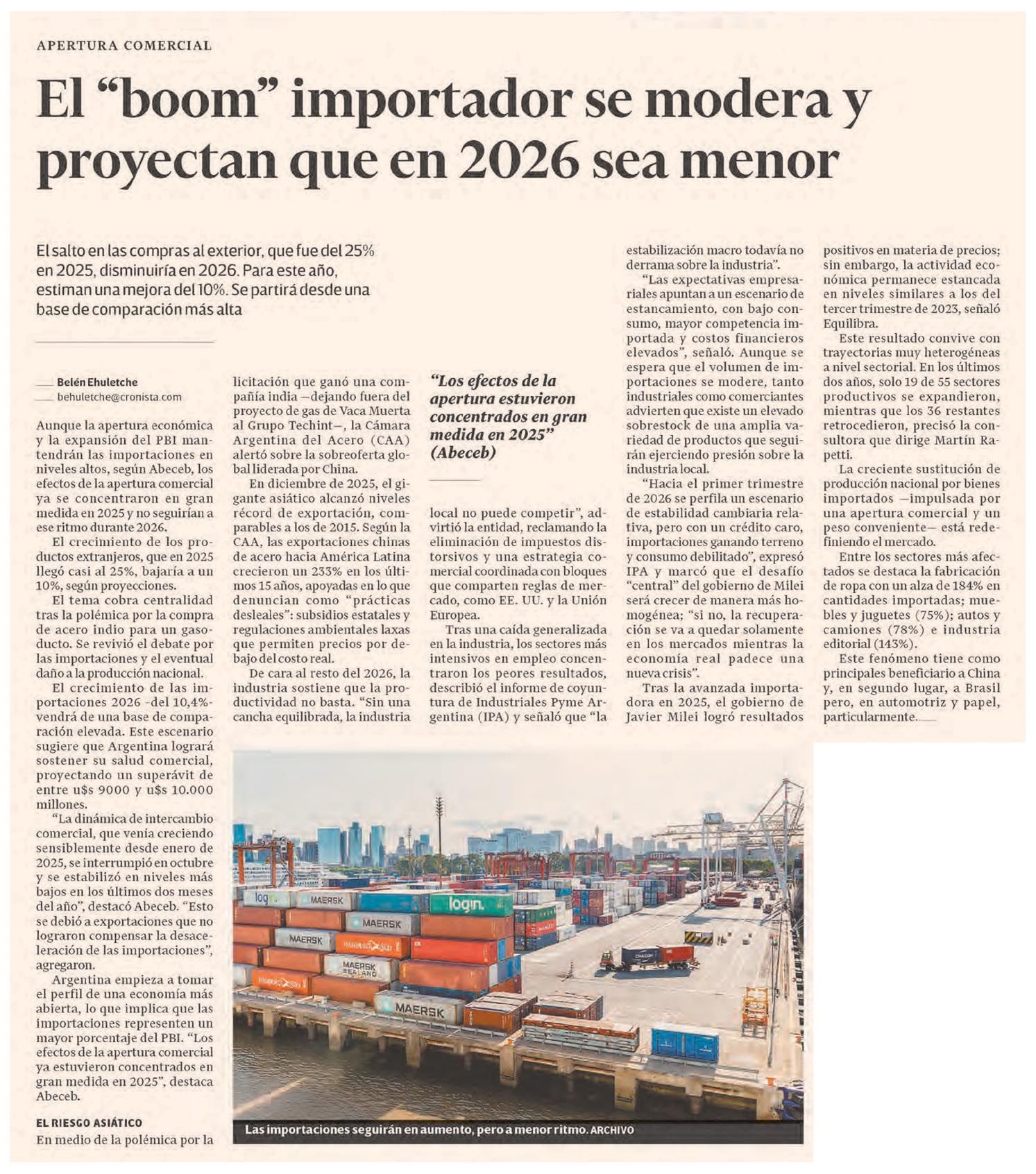 EL CRONISTA – El boom importador se modera y proyectan que en 2026 sea menor