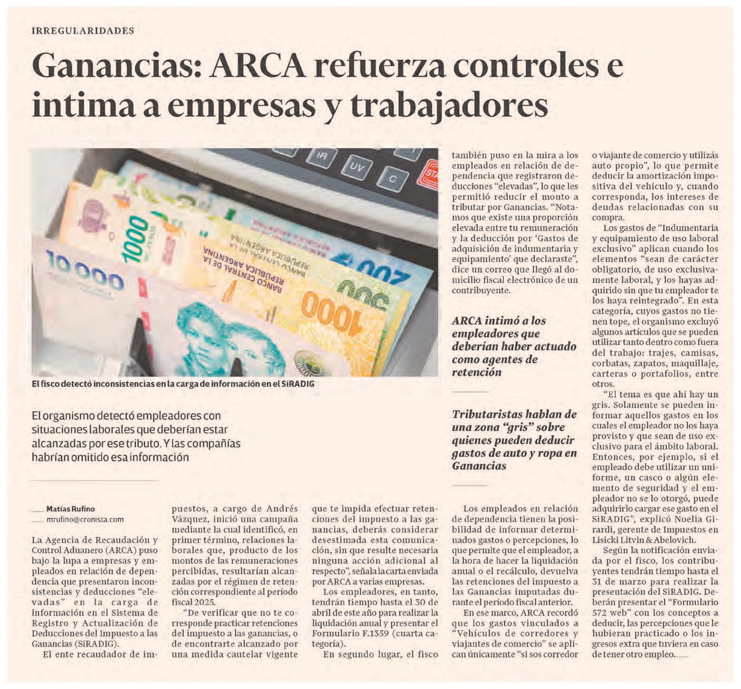 EL CRONISTA – Ganancias: ARCA refuerza controles e intima a empresas y trabajadores