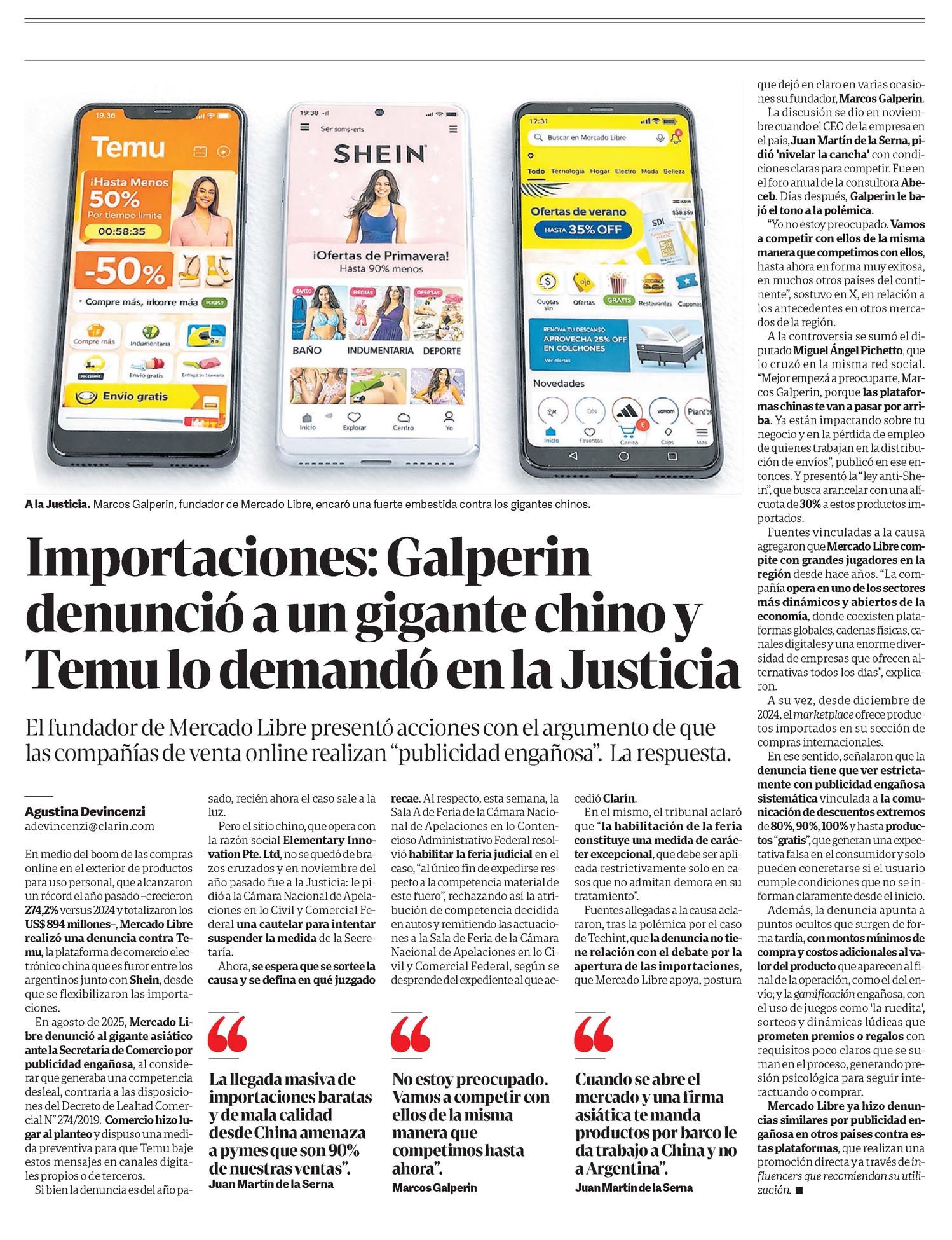 CLARÍN – Importaciones: Galperin denunció a un gigante chino y Temu lo demandó en la Justicia