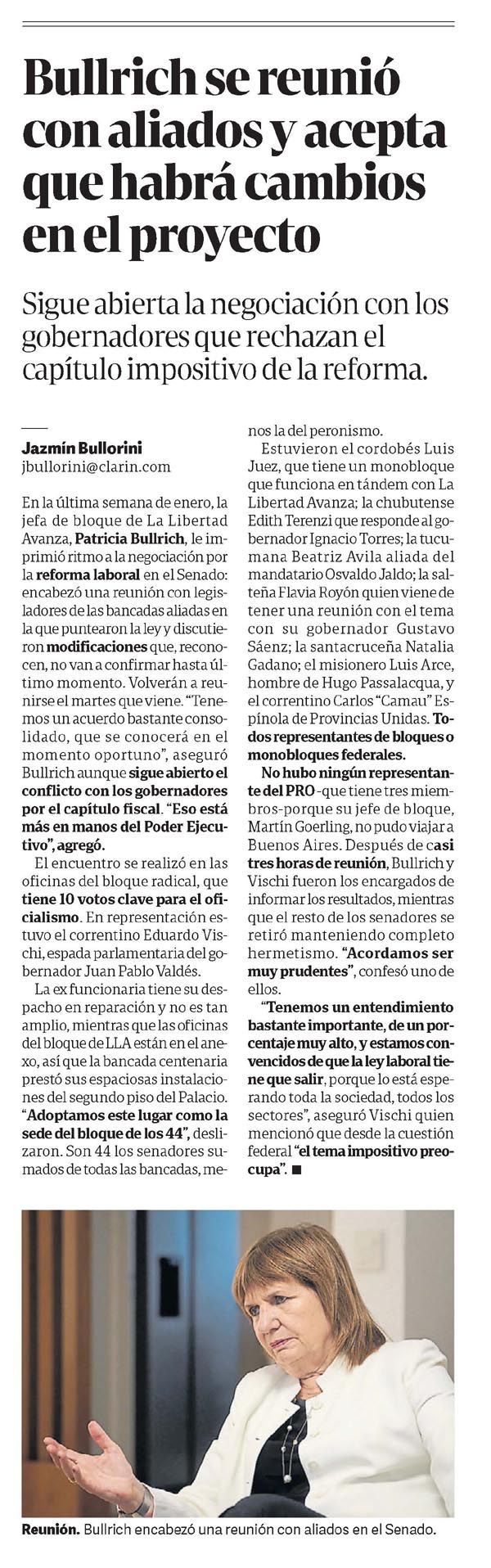 CLARÍN – Bullrich se reunió con aliados y acepta que habrá cambios en el proyecto