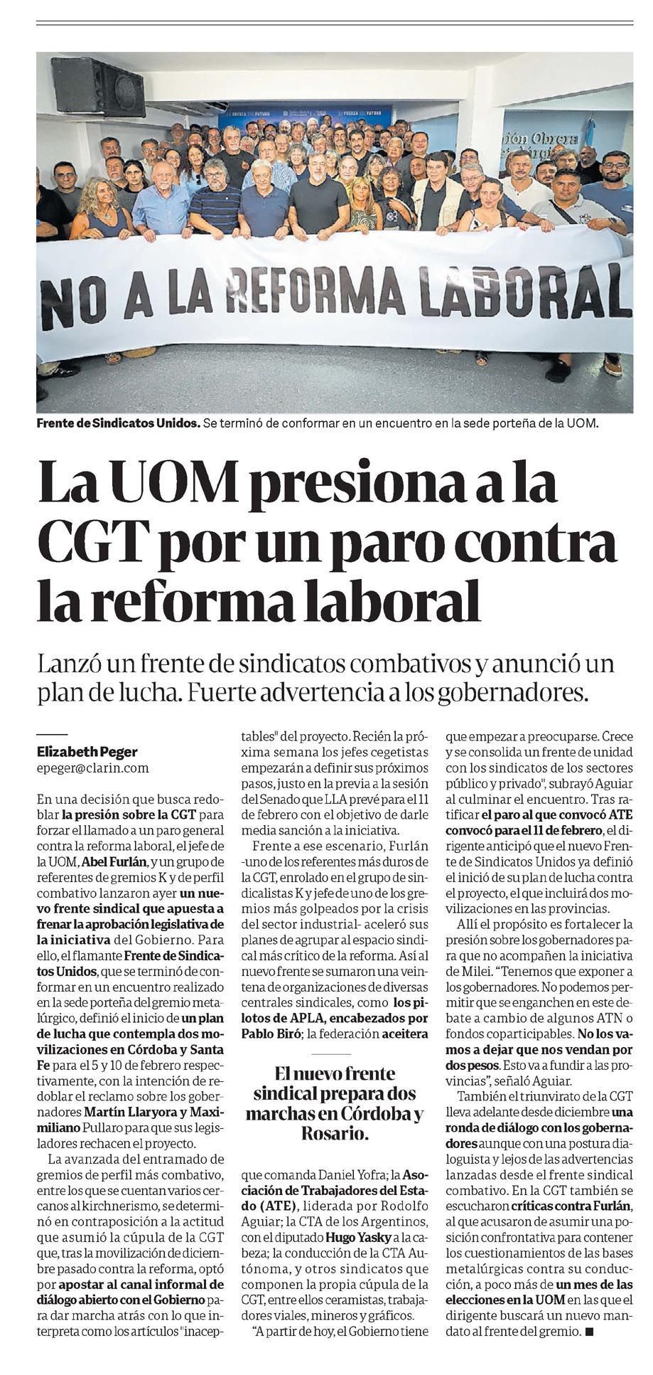 CLARÍN – La UOM presiona a la CGT por un paro contra la reforma laboral