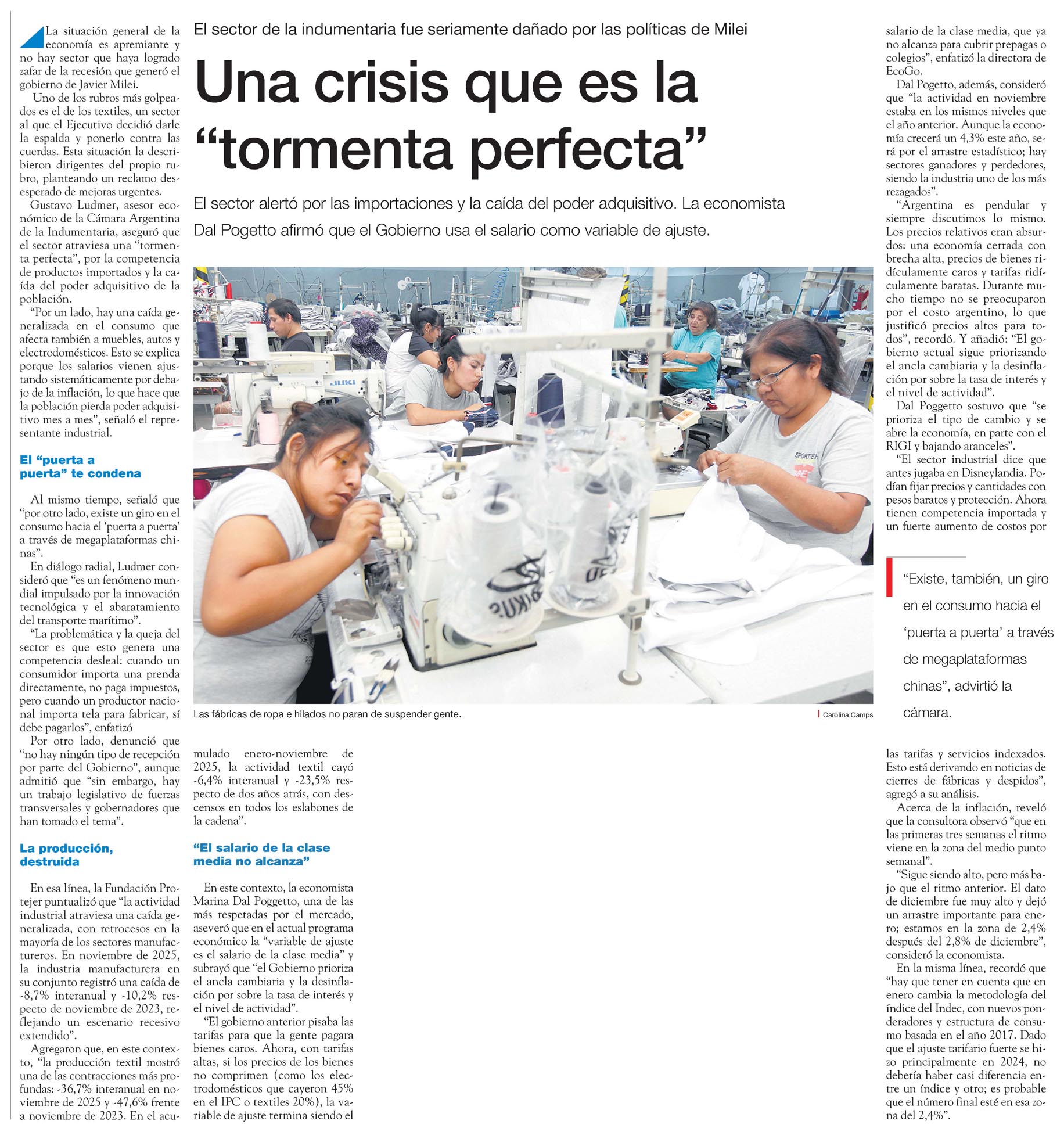 El sector alertó por las importaciones y la caída del poder adquisitivo. La economista Dal Poggetto afirmó que el Gobierno usa el salario como variable de ajuste. La situación general de la economía es apremiante o hay sector que haya logrado zafar de la recesión que generó el gobierno de Javier Milei.