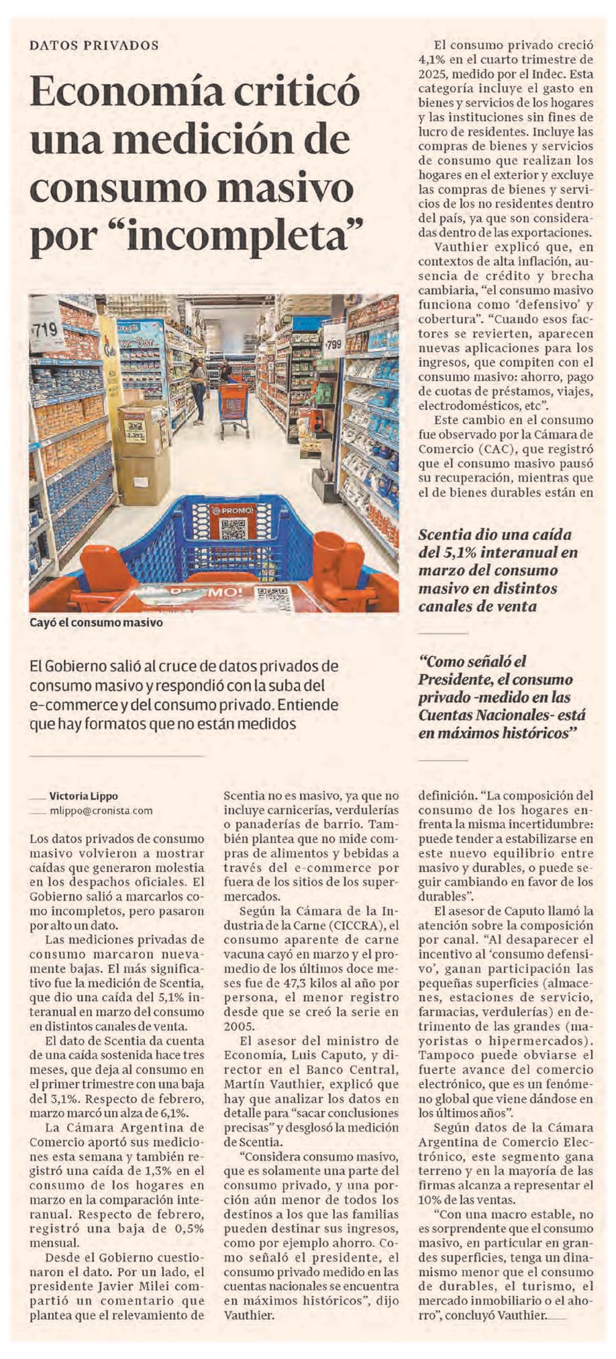 EL CRONISTA – Economía criticó una medición de consumo masivo por "incompleta"