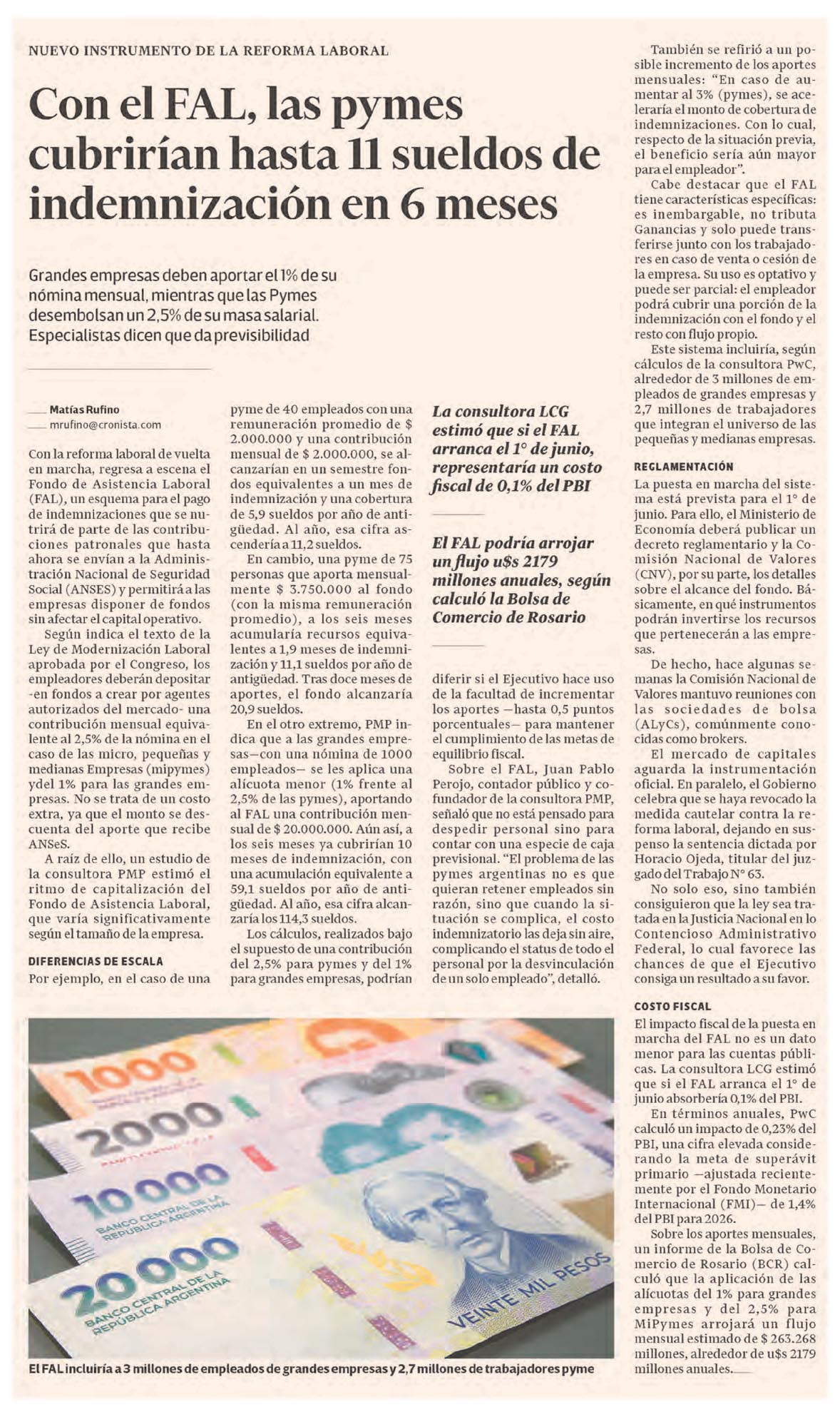 EL CRONISTA – Con el FAL, las pymes cubrirían hasta 11 sueldos de indemnización en 6 meses