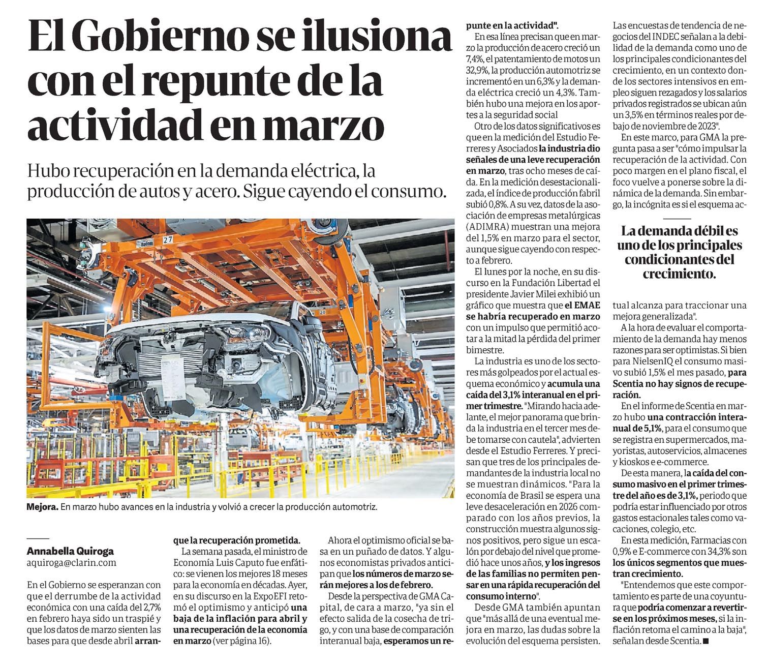 CLARÍN – El Gobierno se ilusiona con el repunte de la actividad en marzo