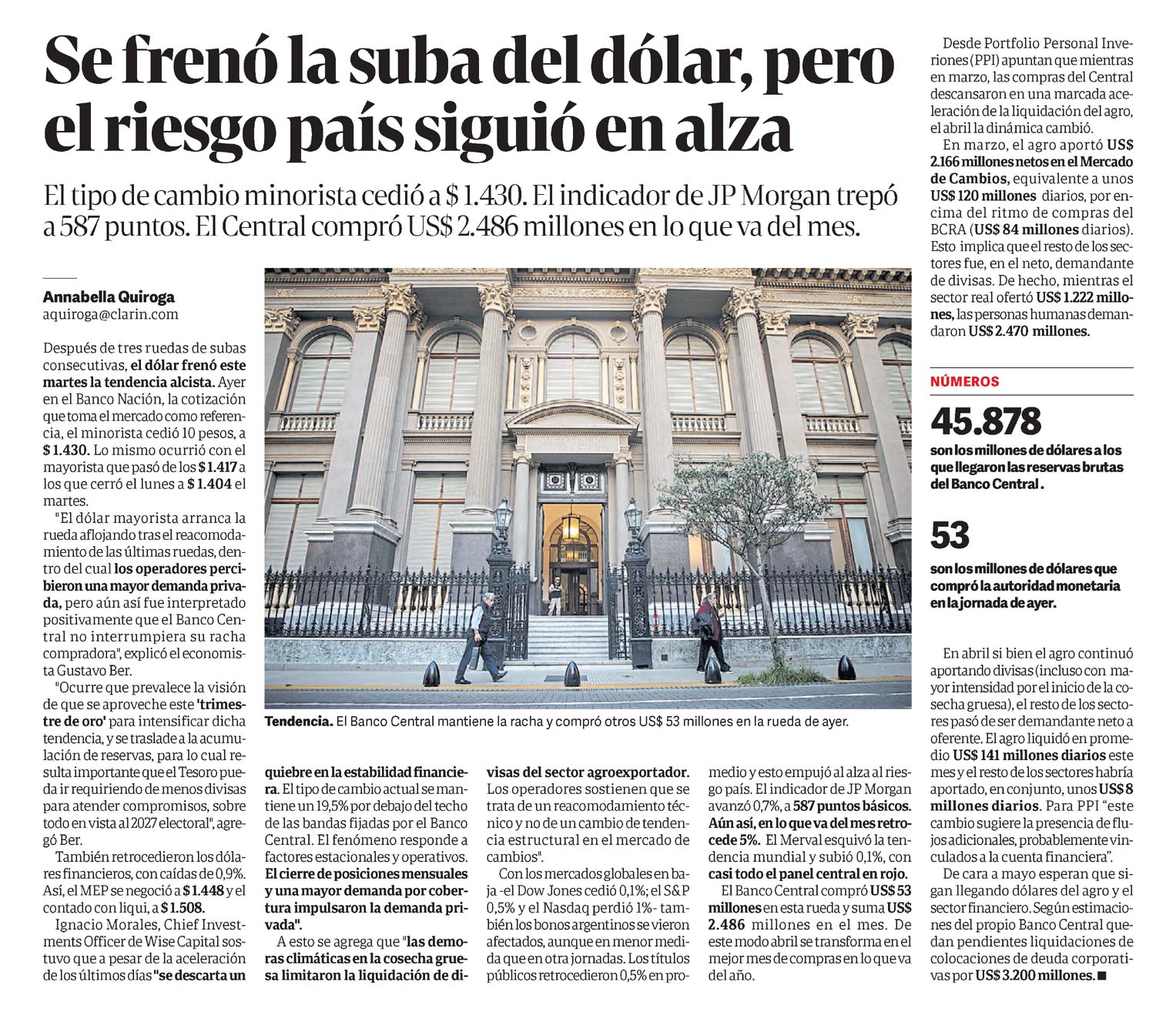 CLARÍN – Se frenó la suba del dólar, pero el riesgo país siguió en alza
