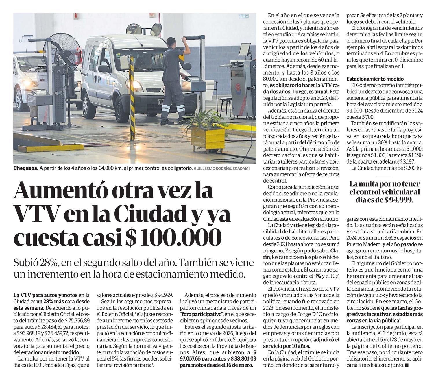 CLARÍN – Aumentó otra vez la VTV en la Ciudad y ya cuesta casi $ 100.000
