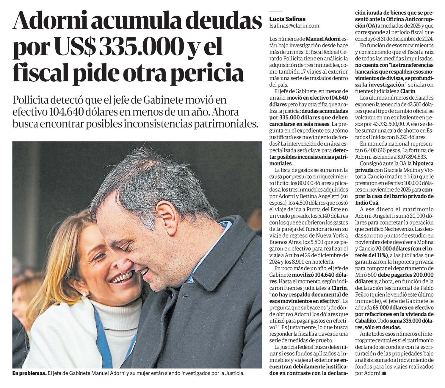 CLARÍN – Adorni acumula deudas por US$ 335.000 y el fiscal pide otra pericia