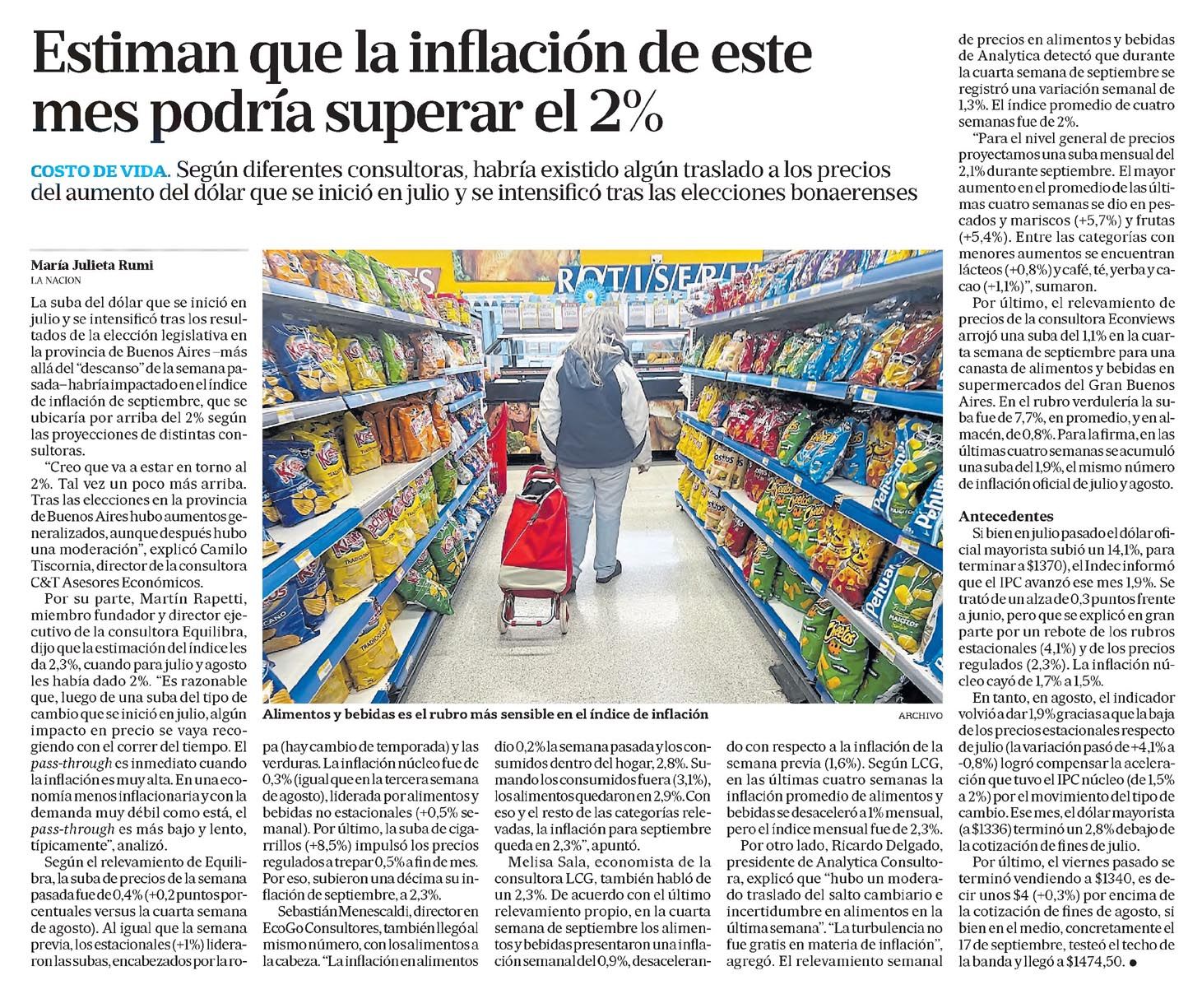 LA NACIÓN – Estiman que la inflación de este mes podría superar el 2%