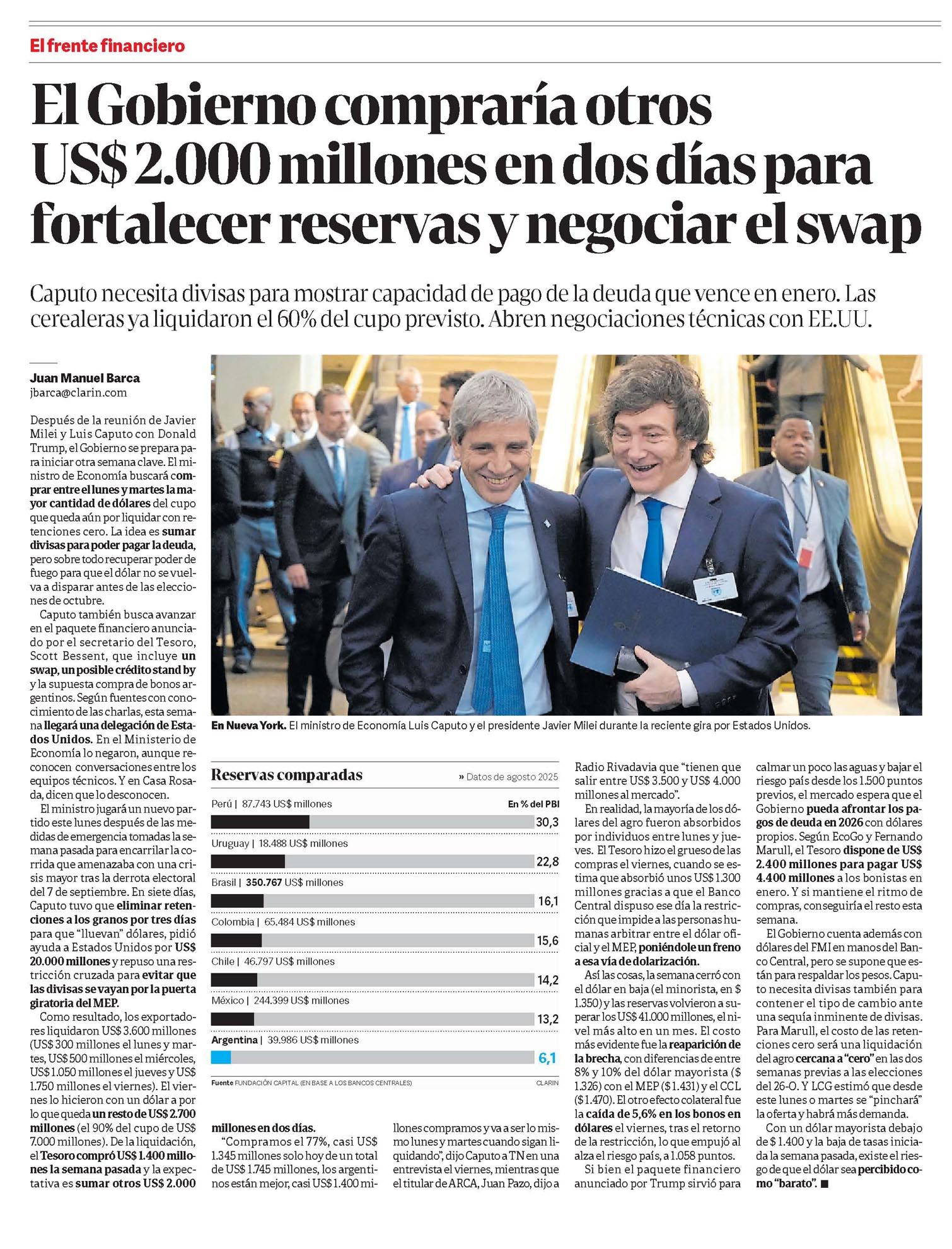 Caputo necesita divisas para mostrar capacidad de pago de la deuda que vence en enero. Las cerealeras ya liquidaron el 60% del cupo previsto. Abren negociaciones técnicas con EE.UU.