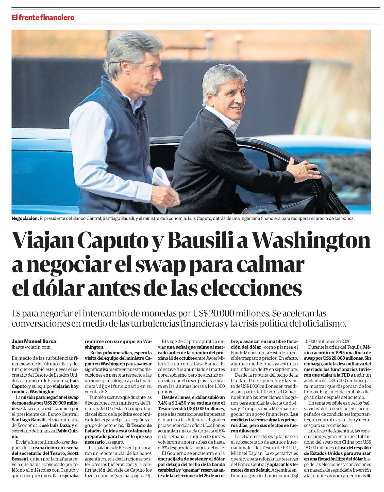 CLARÍN – Viajan Caputo y Bausili a Washington para calmar el dólar antes de las elecciones