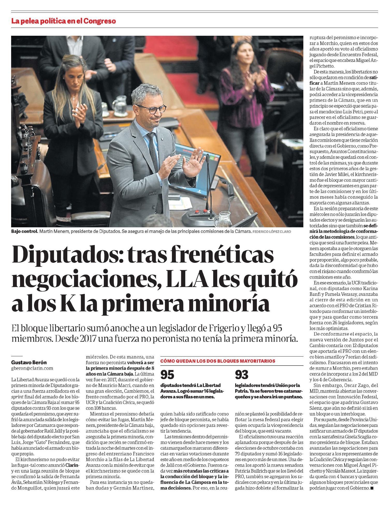 CLARÍN – Diputados: tras frenéticas negociaciones, LLA les quitó a los K la primera minoría