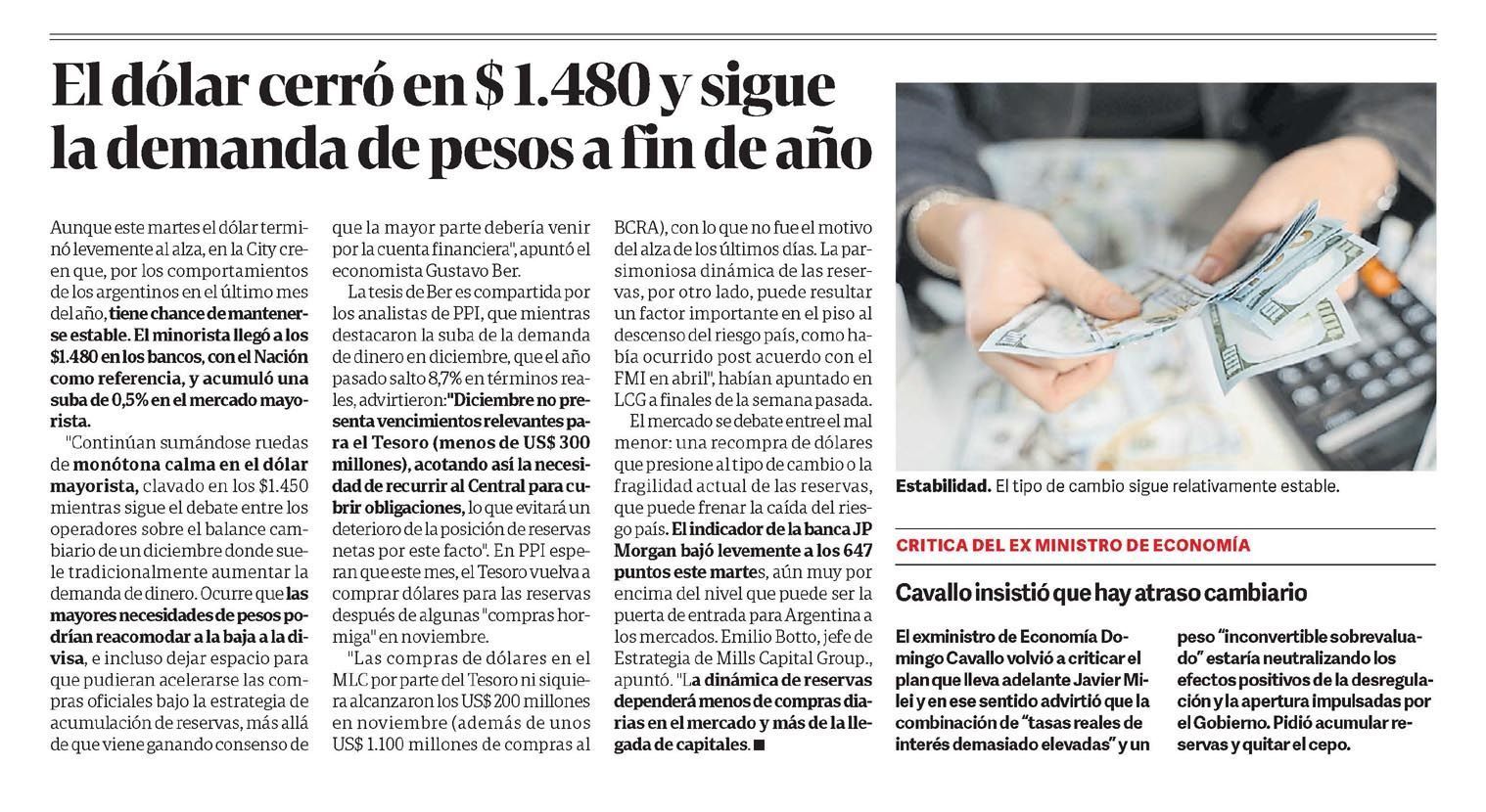 CLARÍN – El dólar cerró en $1.480 y sigue la demanda de pesos a fin de año
