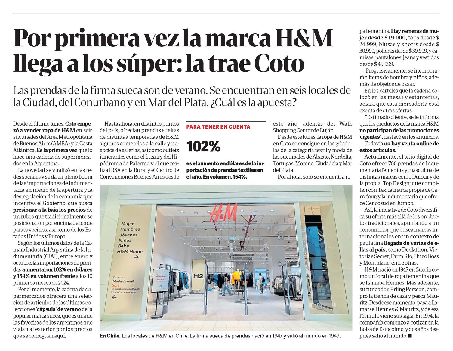 CLARÍN – Por primera vez la marca H&M llega a los súper: la trae Coto