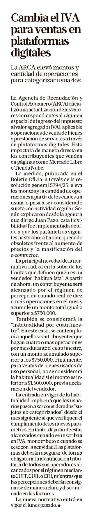LA NACIÓN – Cambia el IVA para ventas en plataformas digitales