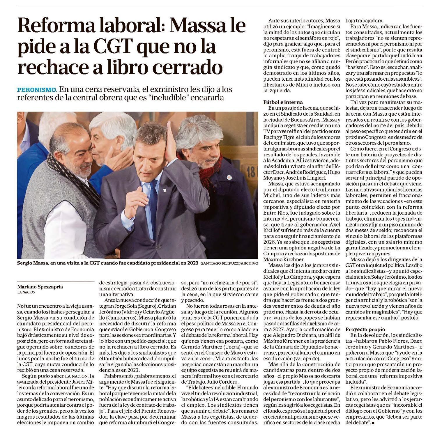 LA NACIÓN – Reforma laboral: Massa pide a la CGT que no la rechace a libro cerrado