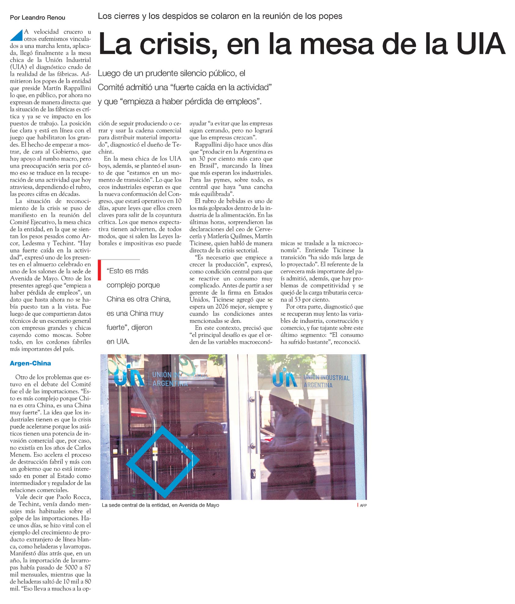 A velocidad crucero u otros eufemismos vinculados a una marcha lenta, aplacada, llegó finalmente a la mesa chica de la Unión Industrial (UIA) el diagnóstico crudo de la realidad de las fábricas. Admitieron los popes de la entidad que preside Martín Rappallini que, en público, por ahora no expresan de manera directa: que la situación de las fábricas es crítica y ya se ve impacto en los puestos de trabajo. La posición fue clara y está en línea con el juego que habilitaron los grandes.