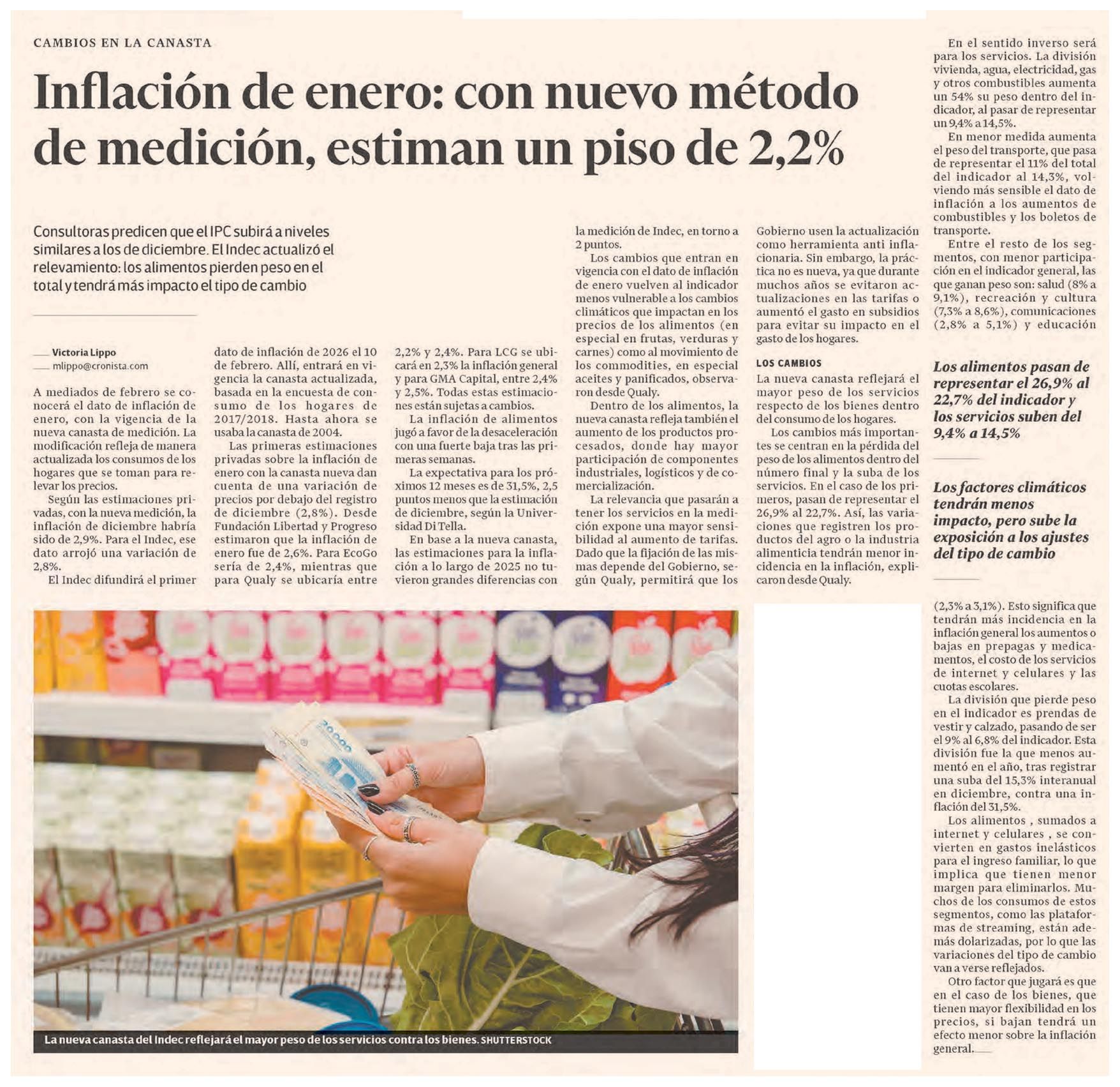 EL CRONISTA – Inflación de enero: con nuevo método de medición, estiman un piso de 2,2%