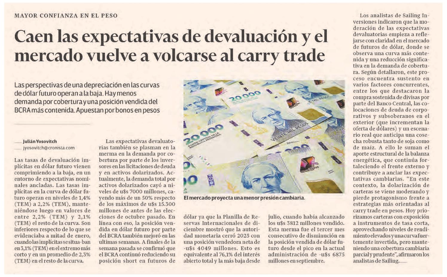 EL CRONISTA – Caen las expectativas de devaluación y el mercado vuelve a volcarse al carry trade