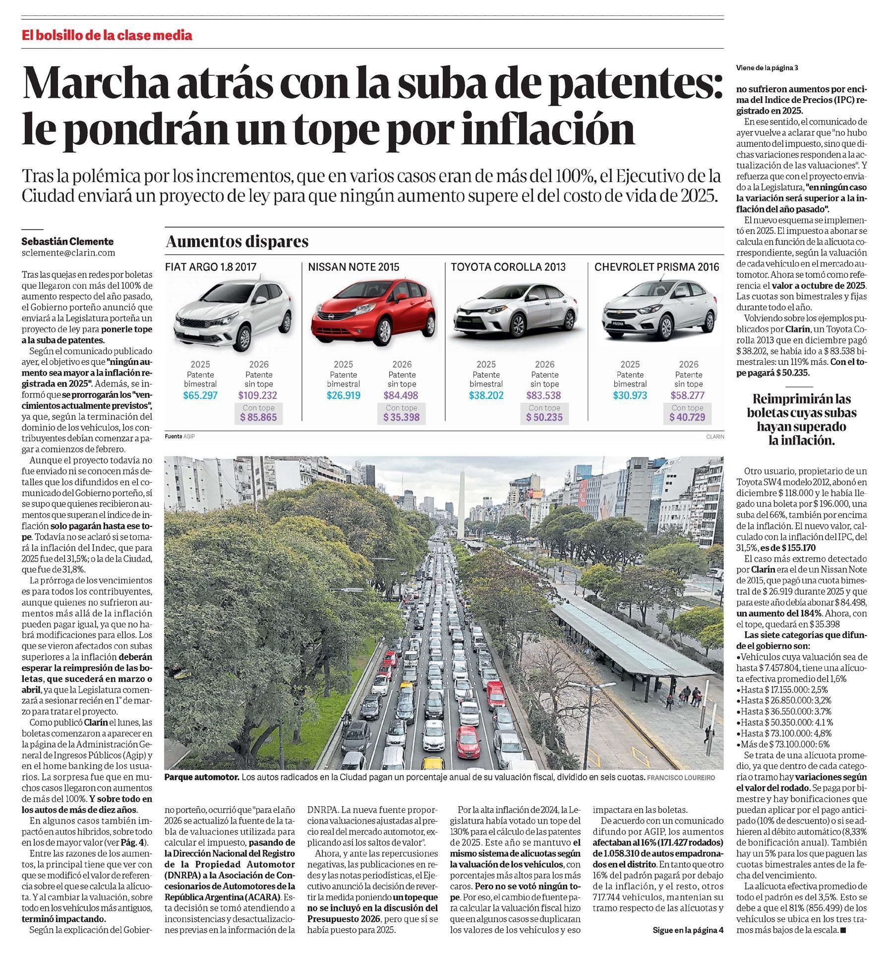CLARÍN – Marcha atrás con la suba de patentes: le pondrán un tope por inflación