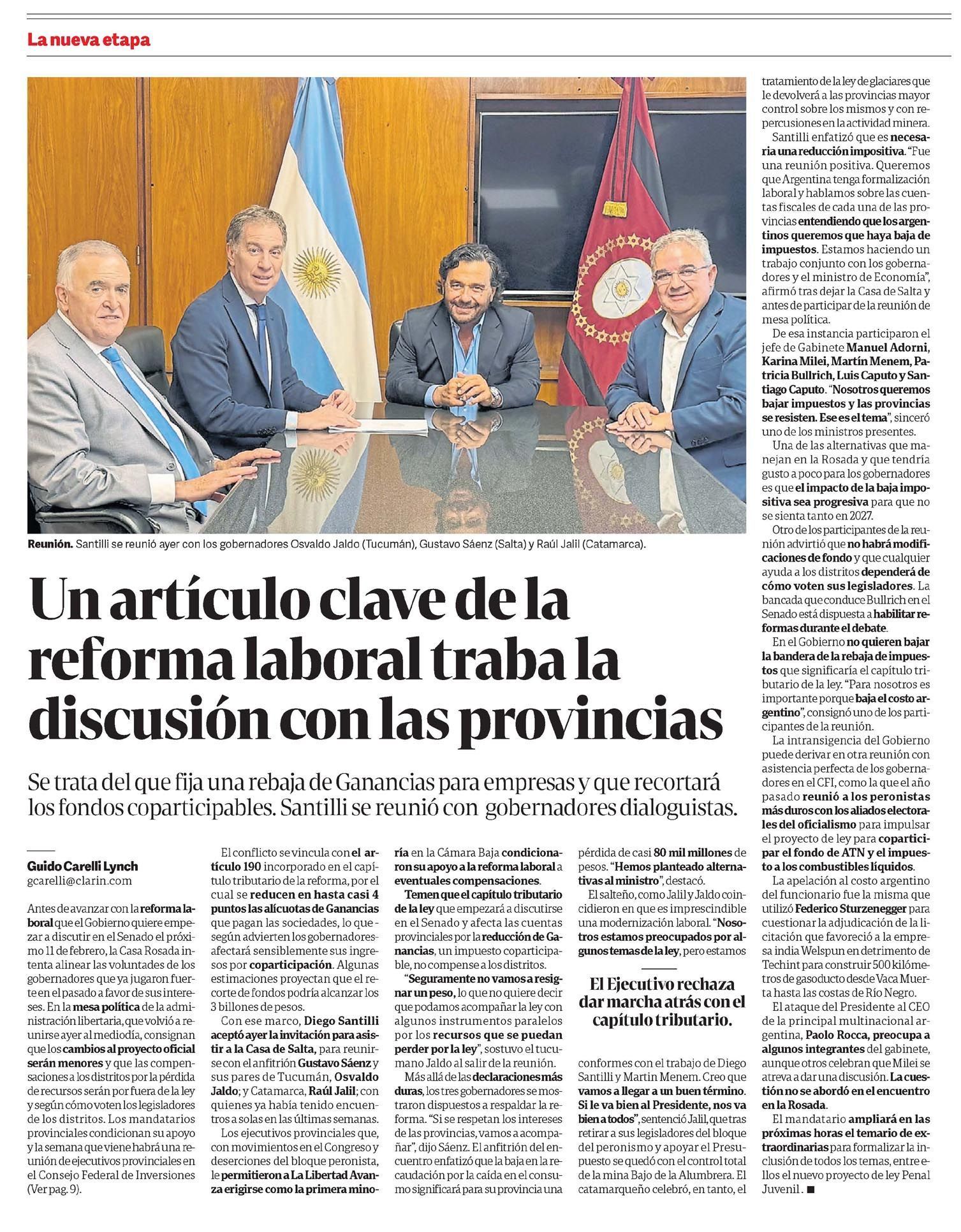 CLARÍN – Un artículo clave de la reforma laboral traba la discusión con las provincias