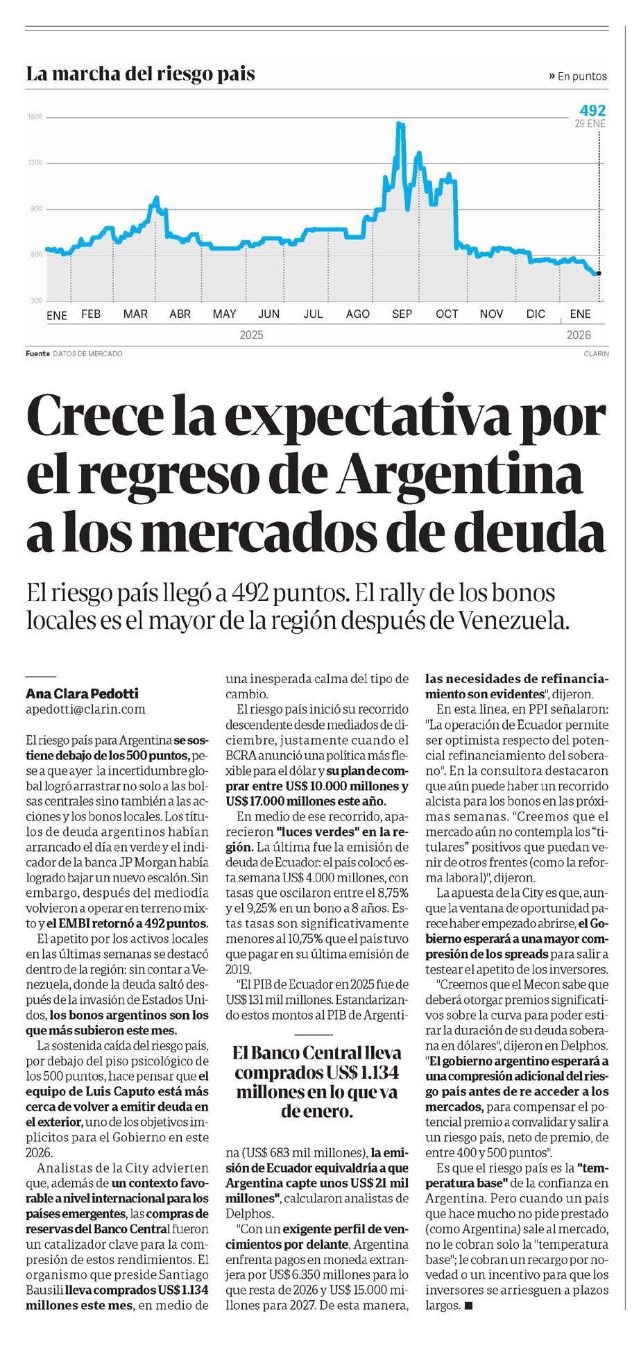 CLARÍN – Crece la expectativa por el regreso de Argentina a los mercados de deuda