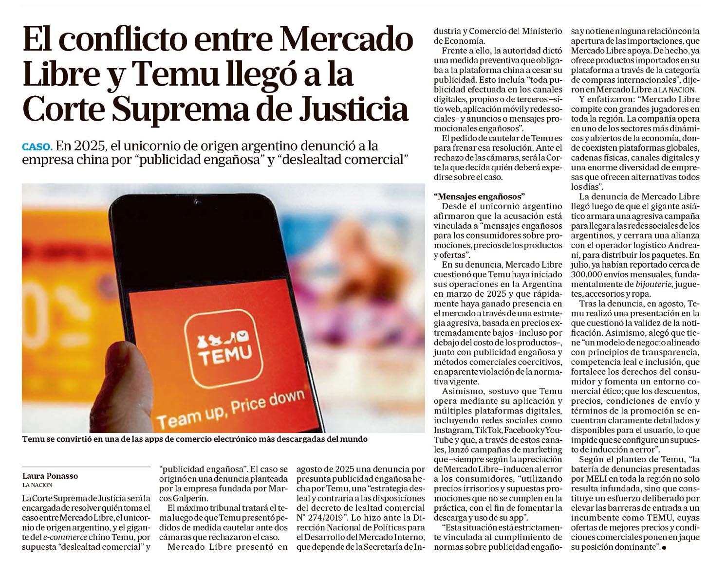LA NACIÓN – El conflicto entre Mercado Libre y Temu llegó a la Corte Suprema de Justicia