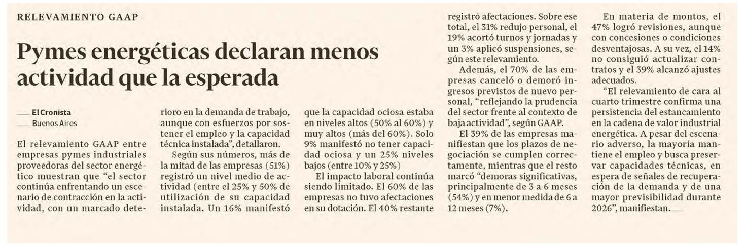 EL CRONISTA – Pymes energéticas declaran menos actividad que la esperada